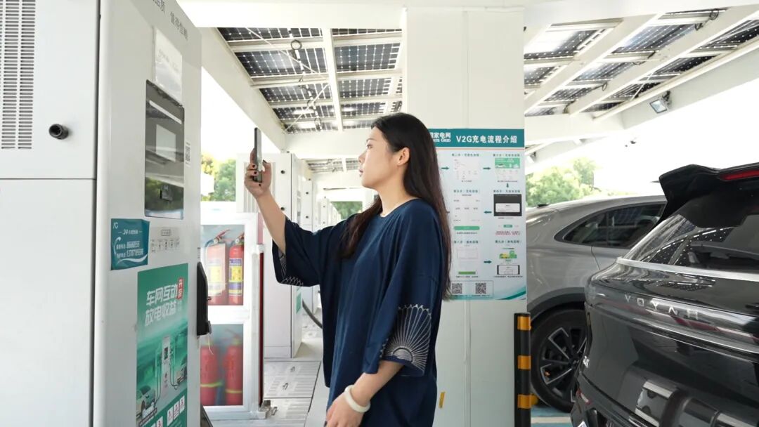 在南太子湖超级充换电站,新能源车主能扫码放电,赚取收益。