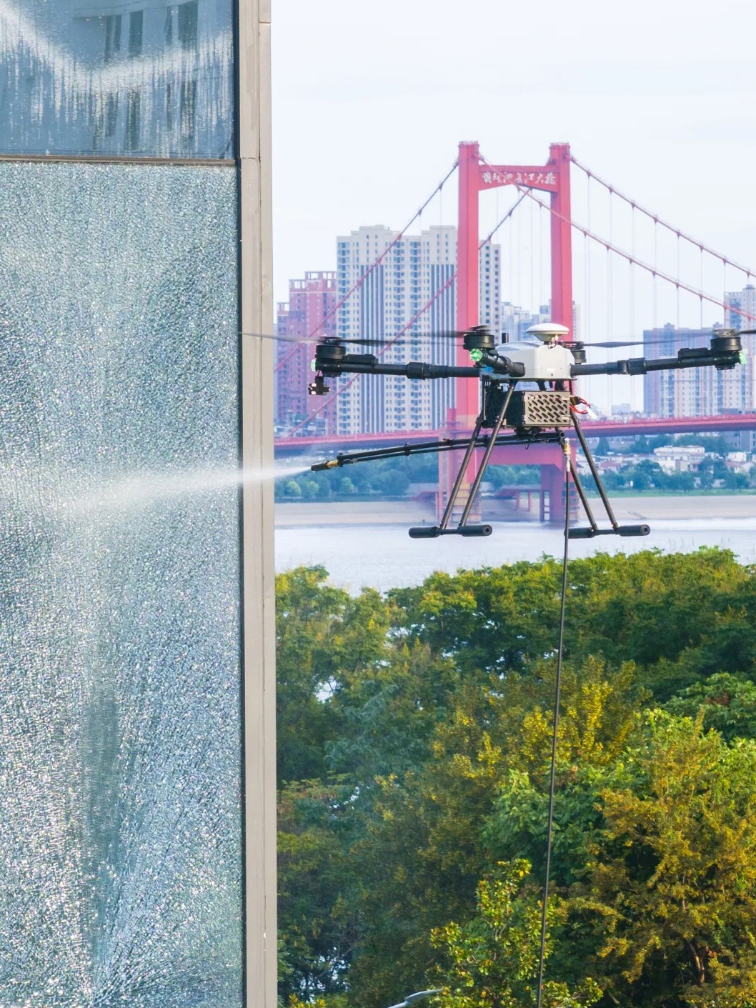 这个能替代高层建筑清洗“蜘蛛人”的专业清洗无人机,由刚入驻汉阳区的低空领域新秀企业艾珞(武汉)科技有限公司(以下简称“艾珞科技”)负责研发,目前正在开展场景应用示范。