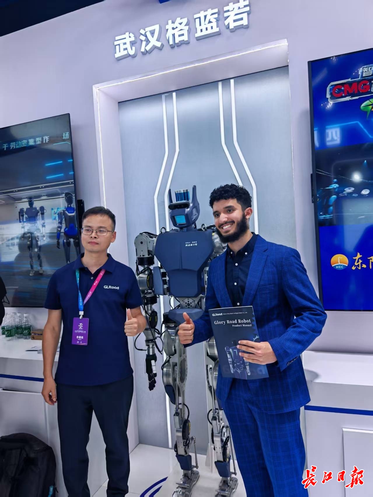 2025世界机器人大会,来自中东的客人点赞武汉格蓝若劳动者系列人形机器人“大壮”。记者柯丽芬 摄