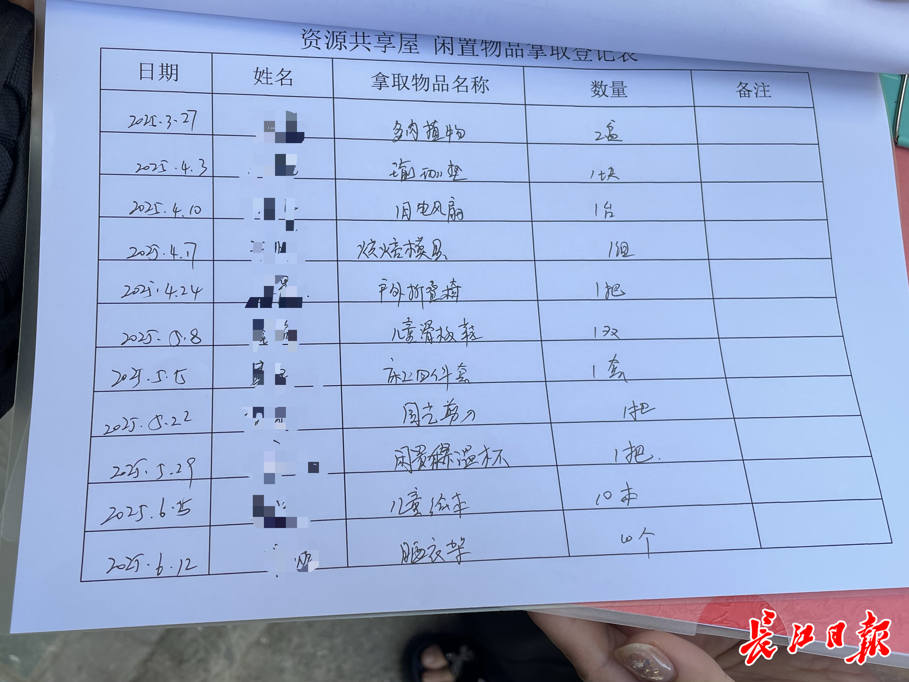 记者在投放登记表上看到,今年已有31人投放,20人取用。5月14日,一位居民将一套床品四件套投放于此,次日被其他居民领走。2022年至今,小屋共有69批次投放和51批次取用,沙发、桌椅、柜子等最受欢迎。