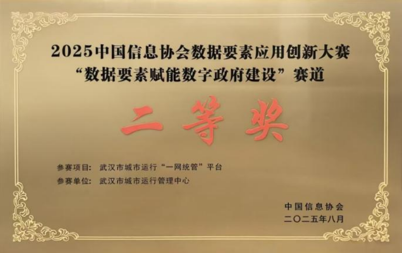 长江日报大武汉客户端8月29日讯(记者商佩 通讯员李炎哲)8月27日,由中国国际大数据产业博览会组委会主办、中国信息协会承办的2025中国国际大数据产业博览会,在贵州省贵阳市举办。武汉市城市运行管理中心(以下简称“市城运中心”)申报的武汉市城市运行“一网统管”平台,从1300多个项目中脱颖而出,在“数据要素赋能数字政府建设——促进社会高效治理”方向荣获全国二等奖,也是“一网统管”领域全国排名最前获奖项目。