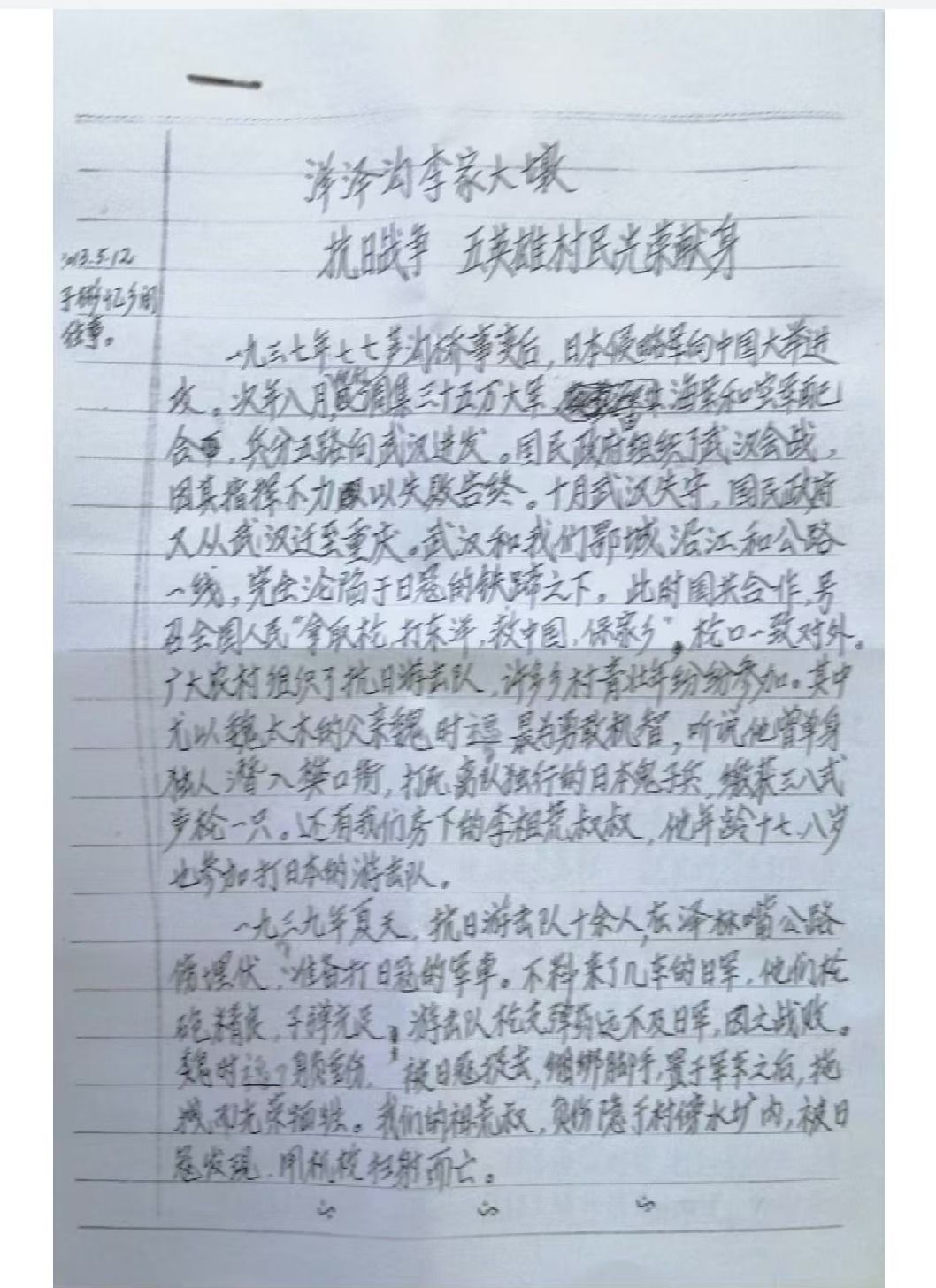 长江日报大武汉客户端8月29日讯(记者 汪洋)“抗日游击战中,我父亲老家鄂州市杜山乡李家大墩乡的5位村民英勇牺牲,多年来,我父亲一直记得他们的名字。”28日,武汉理工大学退休教授李明向长江日报记者展示父亲12年手写的两篇回忆录。