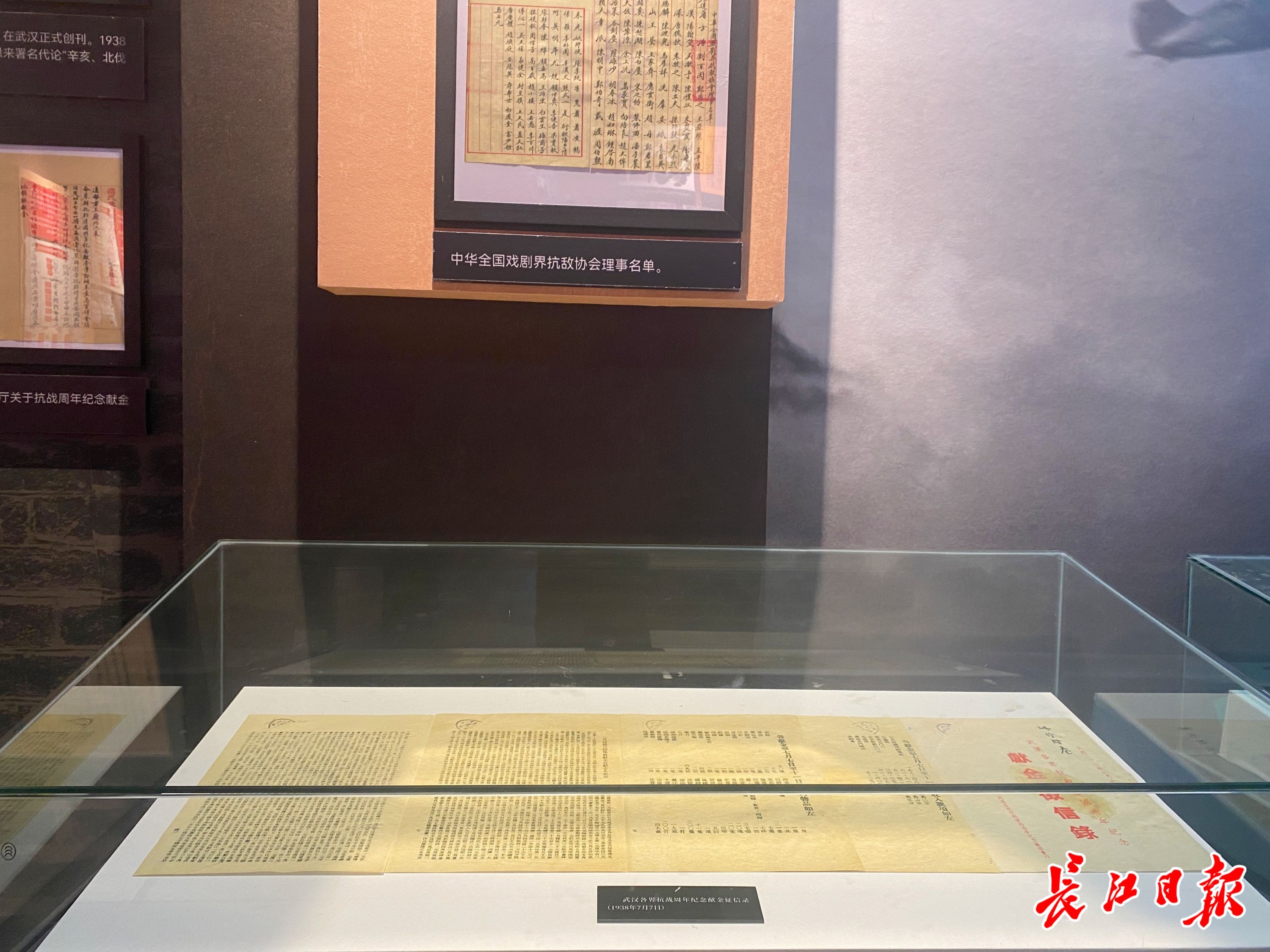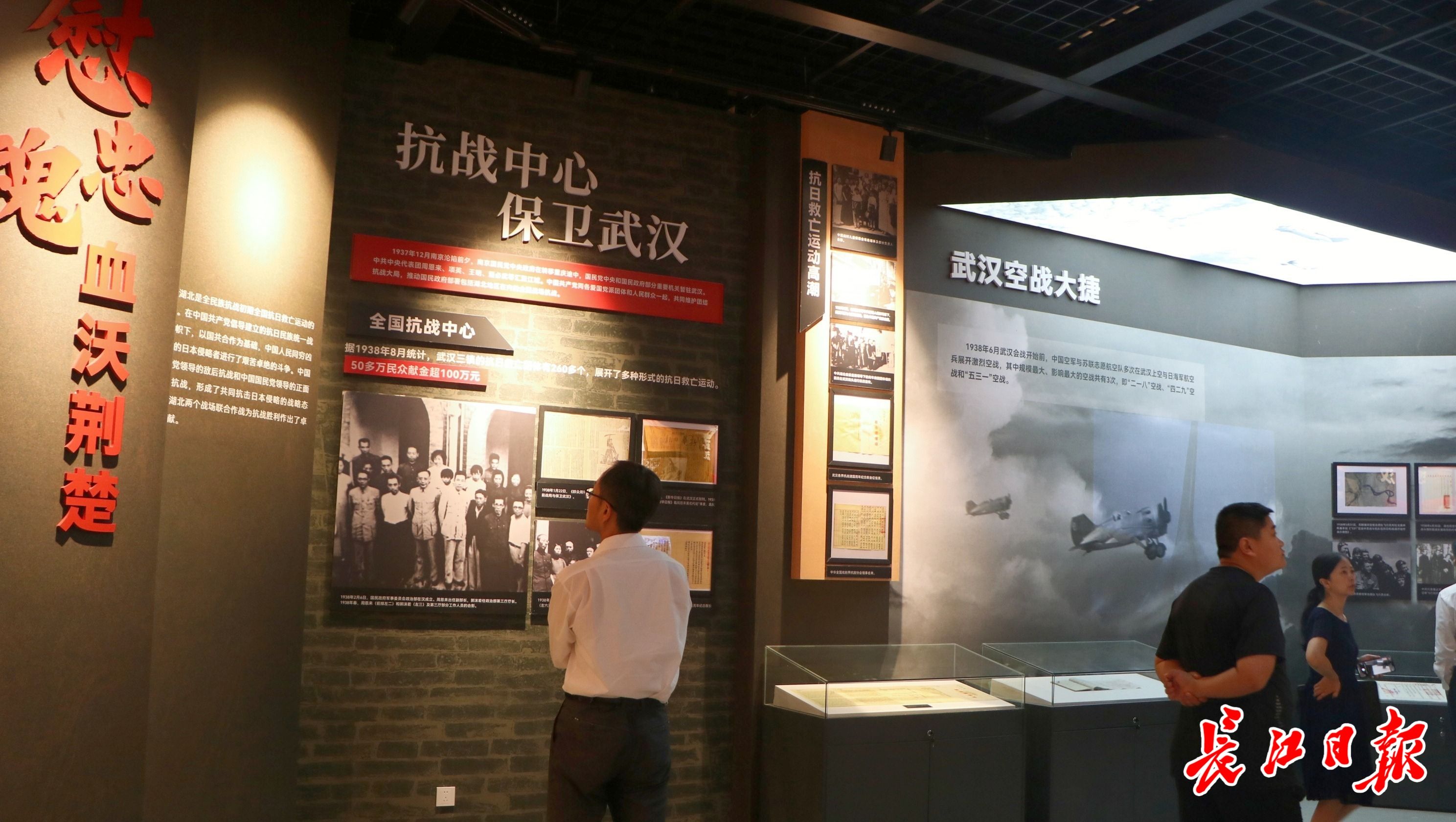 观众在展览中驻足、深思、凝望,接受精神洗礼,凝聚铭记历史、缅怀先烈、珍爱和平、开创未来的决心与信念。展览首次公开展出一份《武汉各界抗战周年纪念献金征信录》。1938年,为最大限度地动员社会各界参加抗日救亡运动,周恩来、郭沫若等发起抗日献金运动。当时在武汉的街头,50万民众排起了长队,大家纷纷来到捐献台捐赠。这份《献金征信录》详细记录了捐献明细,包括银圆、法币、银戒指、小银匙等。首次展出的还有一幅由苏联援华航空志愿队飞行员布拉戈维申斯基手绘的作战示意图,它清晰地还原了1938年武汉上空那场惊心动魄的“531”大空战。展览中一份编于1948年的《自忠县抗战史料》中详细记载了抗日名将张自忠于宜城南瓜店牺牲的情景:“残敌数万蜂屯蚁聚,集中于雷巴古山一带,重炮轰发,机枪扫射,自忠身陷重围,弹伤遍体,犹复力撑危局,奋臂前冲,不幸弹中要害,壮烈殉职。”