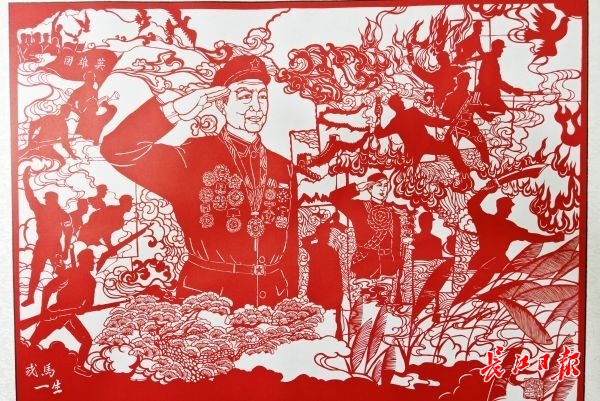 9月2日,中国十大神剪之一、武汉剪纸市级代表性传承人骆清霞,历时一个月时间,创作出剪纸作品《戎马一生》,以此纪念中国人民抗日战争暨世界反法西斯战争胜利80周年。