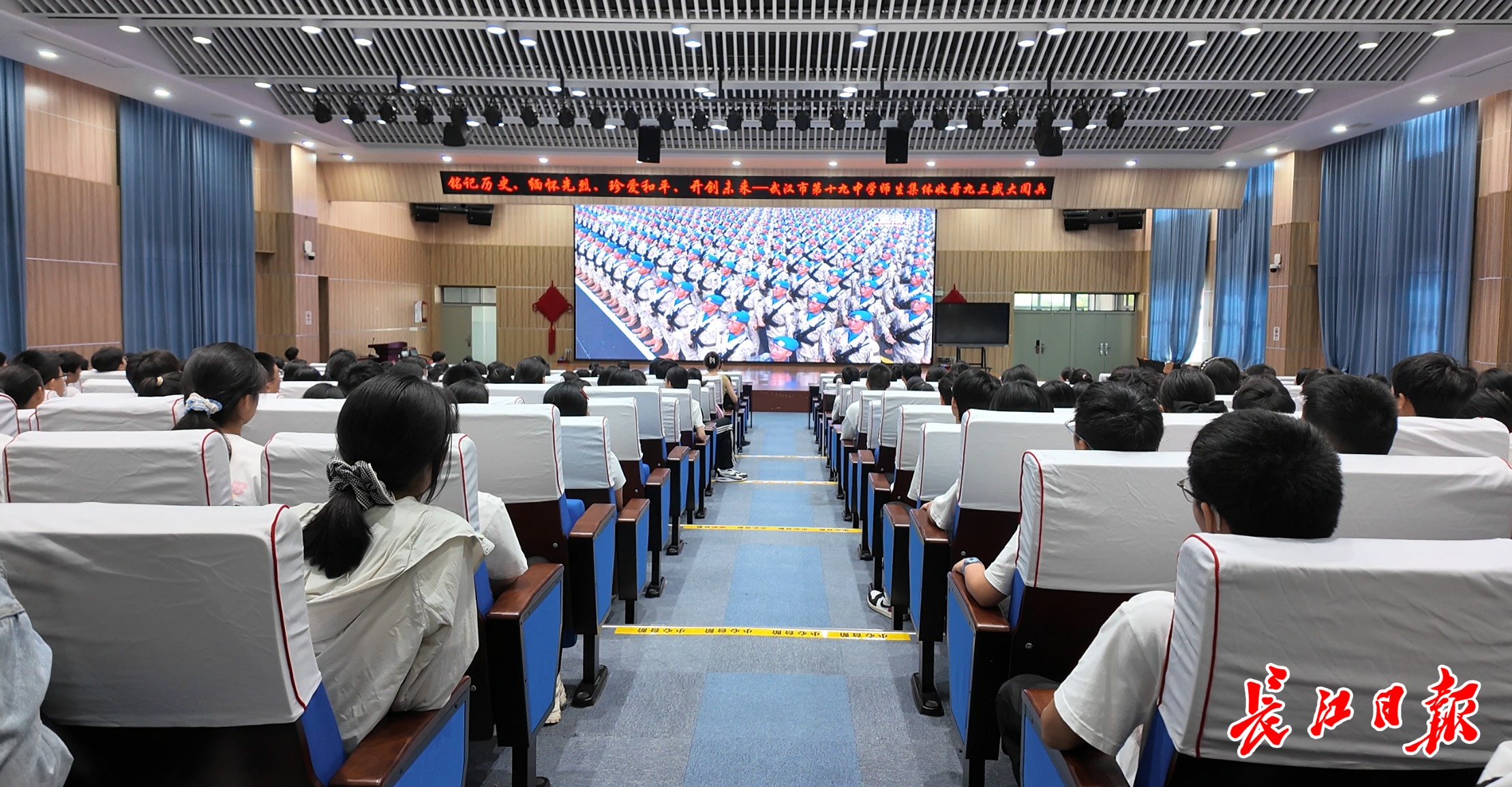 长江日报大武汉客户端9月3日讯(记者刘嘉 通讯员许加汶)2025年9月3日,纪念中国人民抗日战争暨世界反法西斯战争胜利80周年大会在天安门广场隆重举行。武汉市第十九中学全体师生在校集体收看,共同铭记历史、缅怀先烈,感受强国强军的磅礴力量。