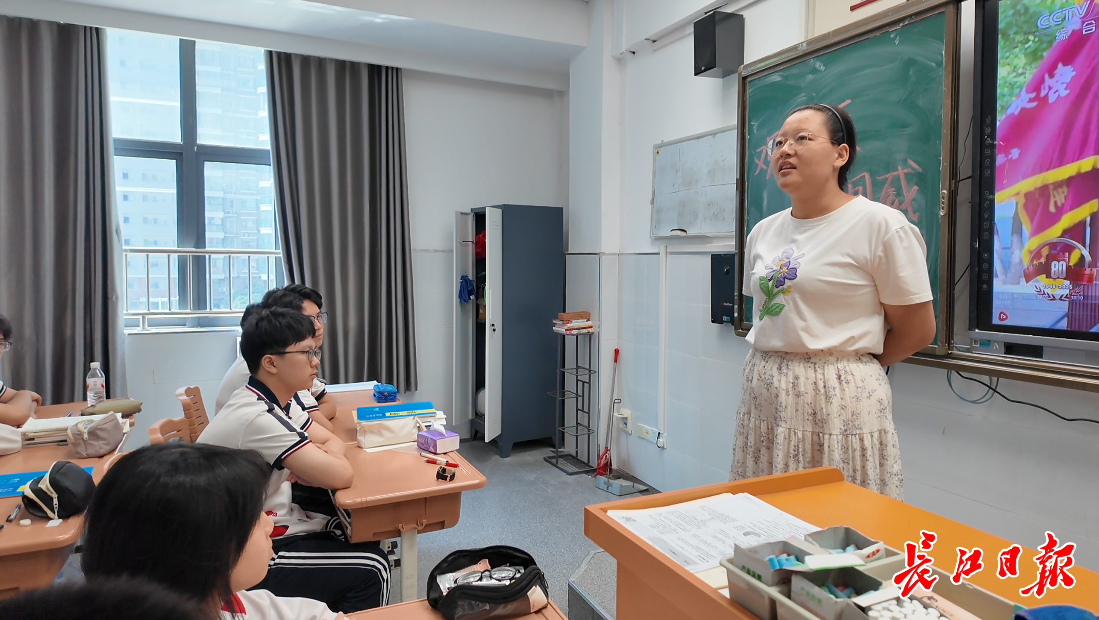 军属教师给学生讲抗战故事。记者刘嘉 摄