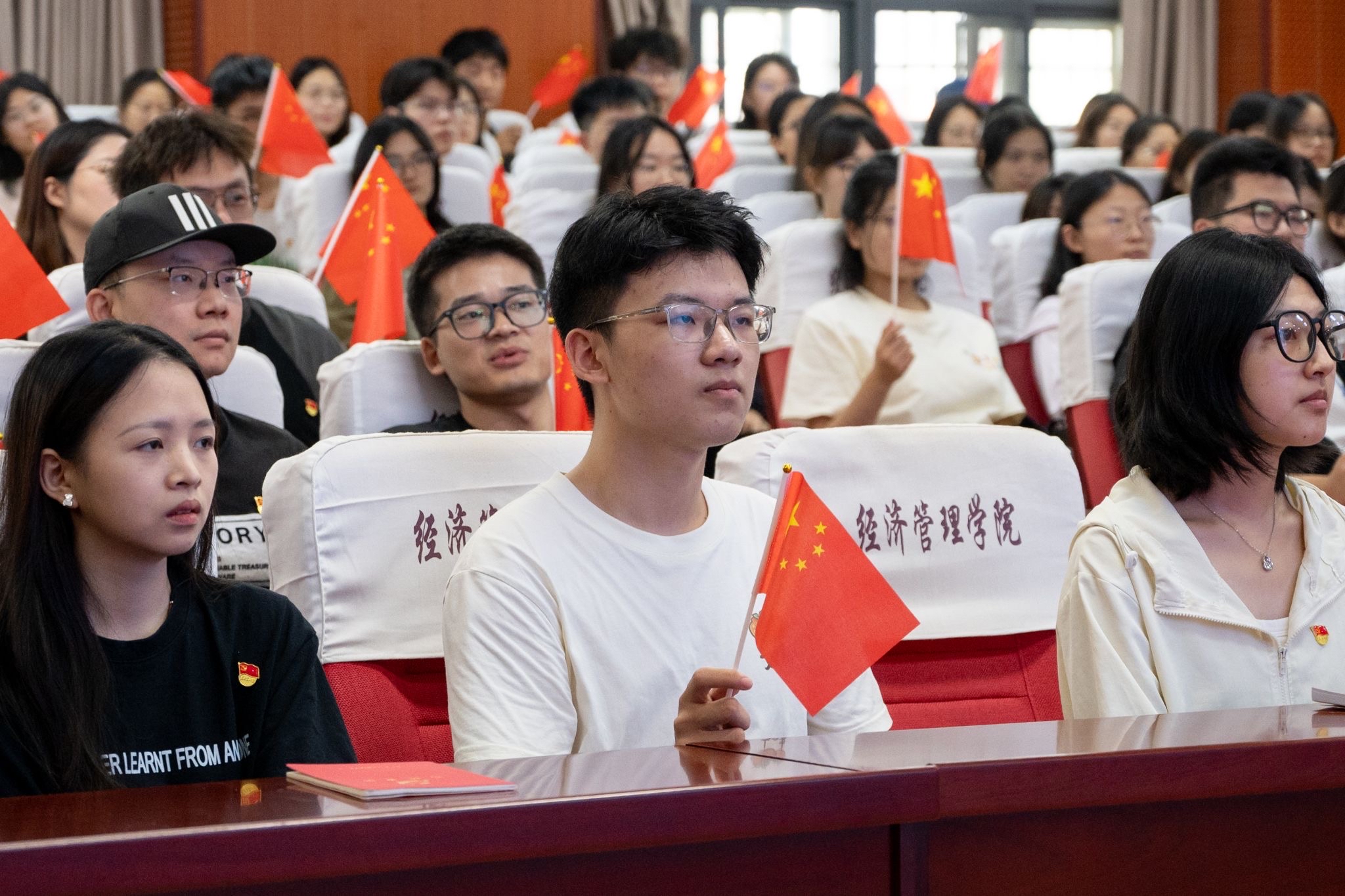 长江日报大武汉客户端9月3日讯(记者陈晓彤 通讯员晏华华)9月3日上午,华中农业大学多个学院组织集中观看纪念中国人民抗日战争暨世界反法西斯战争胜利80周年大会。当天,经济管理学院2025级新生郎翔阳光早早来到学院会议室,和同学们一起观看。对他而言,这场盛典有着非同寻常的意义。