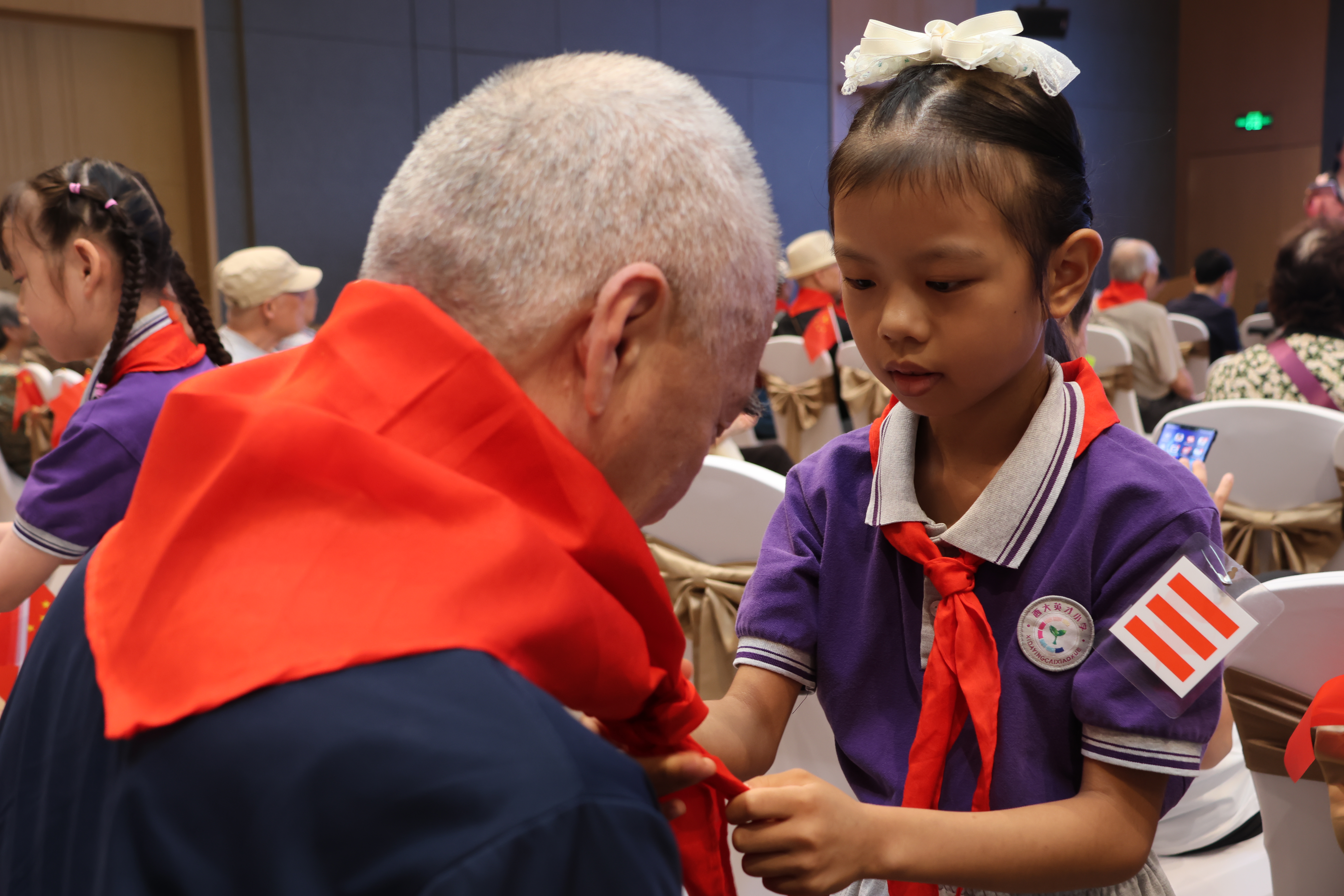 活动结束后,小学生代表为退役军人长者们分别系上红领巾,并行少先队队礼。长者们勉励孩子们:“好好学习,天天向上,将祖国建设成世界强国!”