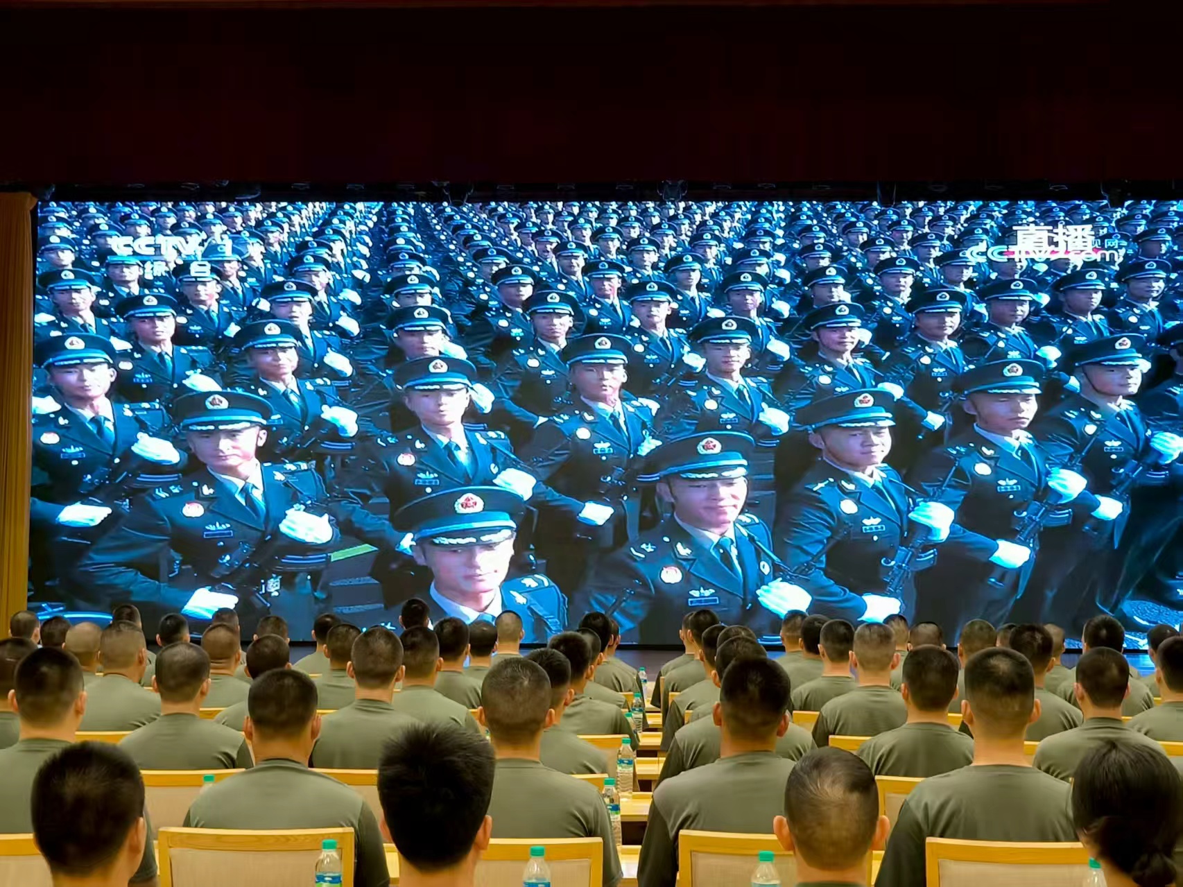大家集体观看九三阅兵直播。 通讯员陈志超 摄