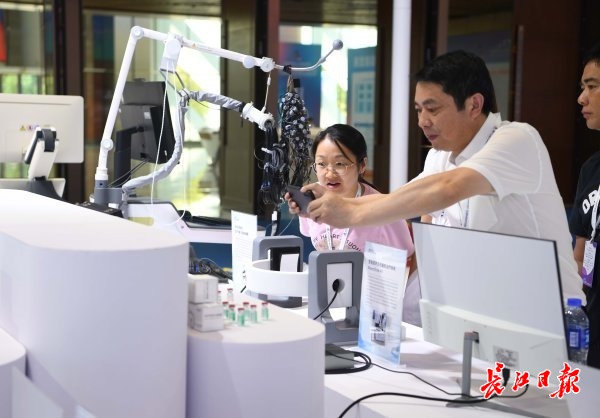 记者在面积多达1万平方米的展区看到,来自光谷生物城的联影医疗、人福医药、禾元生物、朗来科技等多家头部企业,携带最新成果亮相,其中不乏全球首创。联影医疗展出了全球首款5.0T人体全身磁共振系统、多元手术治疗平台等多款标志性产品;禾元生物展出的全球首创的“稻米造血”一类新药——奥福民重组人白蛋白注射液(水稻)吸引了众多逛展市民;滨会生物自主研发的OH2注射液,是全球首个以Ⅱ型单纯疱疹病毒为载体进入关键性临床研究的溶瘤病毒药物,获得了国家重大新药创制专项支持。