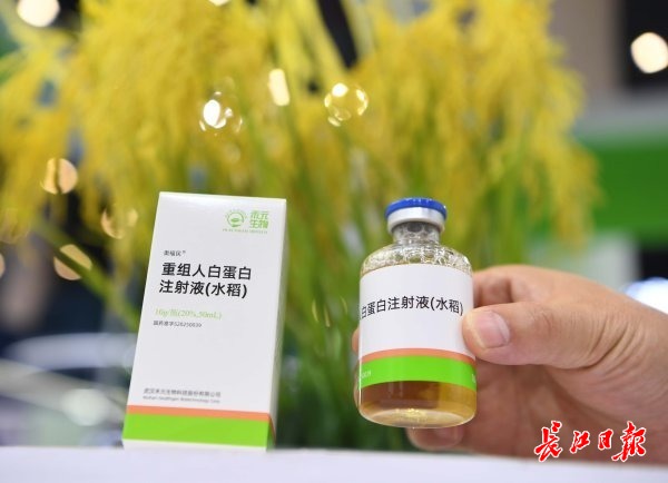 禾元生物展示的重组人白蛋白注射液(水稻)。 长江日报记者高勇摄