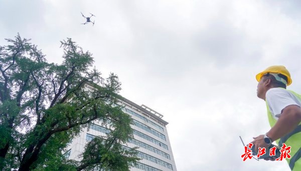去年夏天,高温天气持续时间超长,汉阳树生长受到影响,叶色发黄,部分树叶出现焦边、提前黄落现象。梅复传请来古树保护专家“把脉”后,建议为汉阳树安装一套喷雾系统,同时配备一架农用植保无人机,给汉阳树喷水降温保湿,兼具喷施叶面肥和喷药防治病虫害功能。