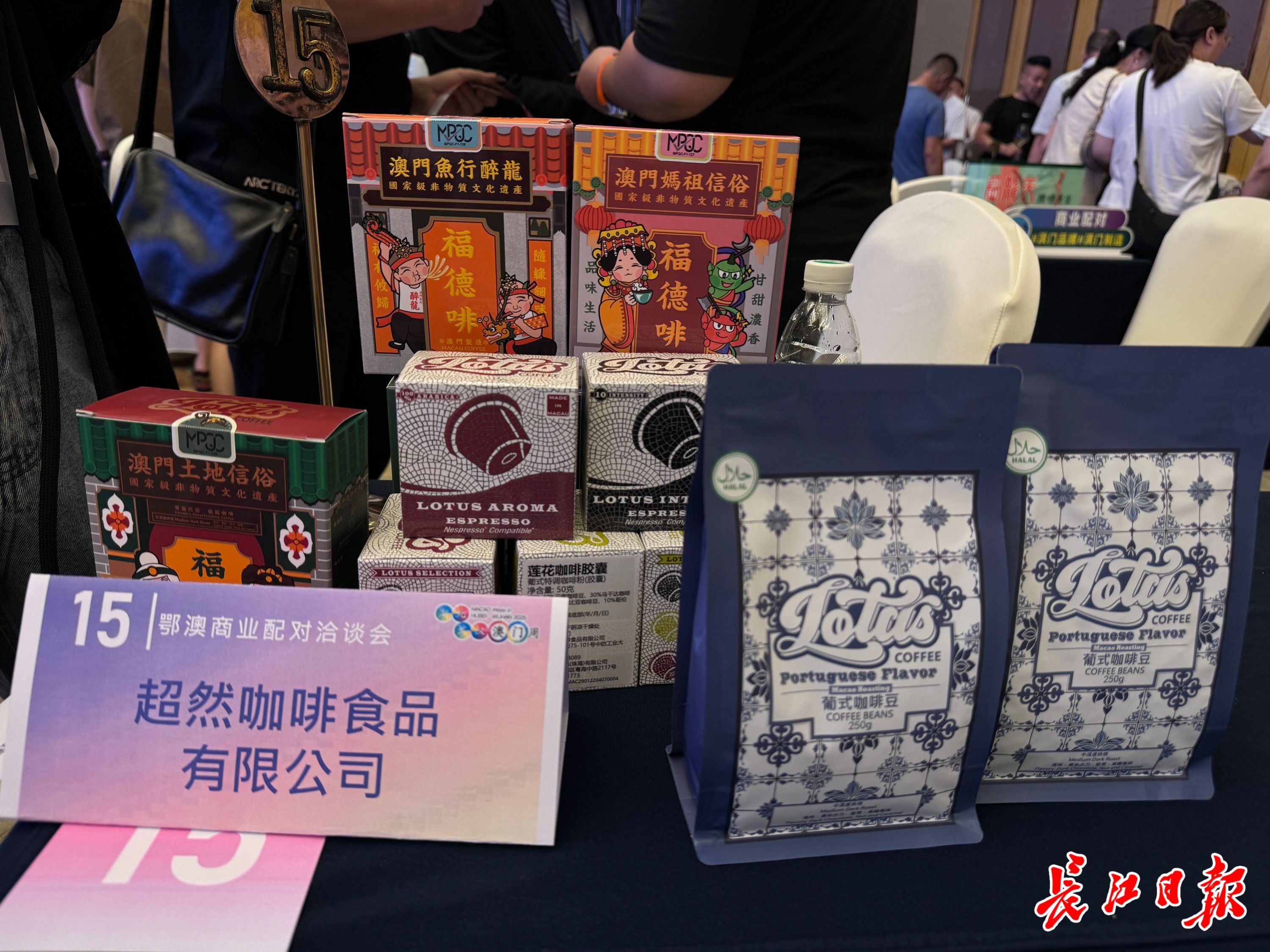 洽谈会现场满是热情对接的鄂澳企业代表,澳门特色手信、红酒、茶饮糕点、医疗健康等带有澳门风情的展品吸引不少客商驻足、交谈,更多跨区域的鄂澳合作火花正在迸发。