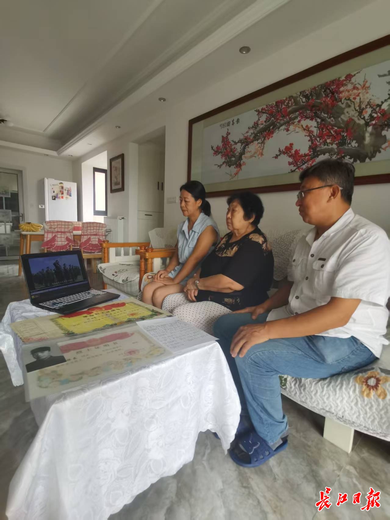9月7日上午,长江日报记者来到王遵正位于汉阳区四新街道的家中时,刘秀英老人在儿子儿媳的陪伴下,一边听着电脑里播放的《外公的怀表》,一边用手摩挲着父亲刘振东生前的军装照。深情的旋律一遍又一遍响起,老人已经泪流满面。“只要想念外公,母亲就会反复听这首歌。”王遵正说,他是中国音乐家协会会员,同时也是这首歌曲的词作者。