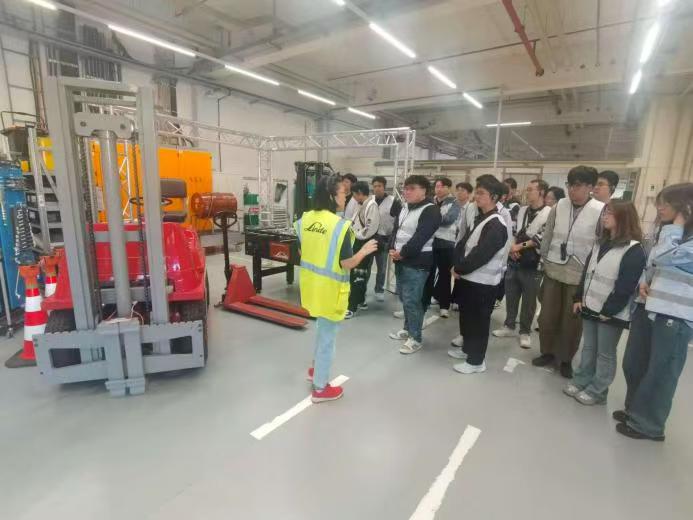 企业参访环节,师生走进宾采尔集团、凯傲集团及大众智能工厂,实地观摩高度集成自动化产线与数字化生产流程。大众工厂百余台机器人协同作业、柔性产线支持多车型混线生产的场景,让学生直观理解“数据驱动”的内涵,深刻认识到复合型人才对中国制造升级的重要性。