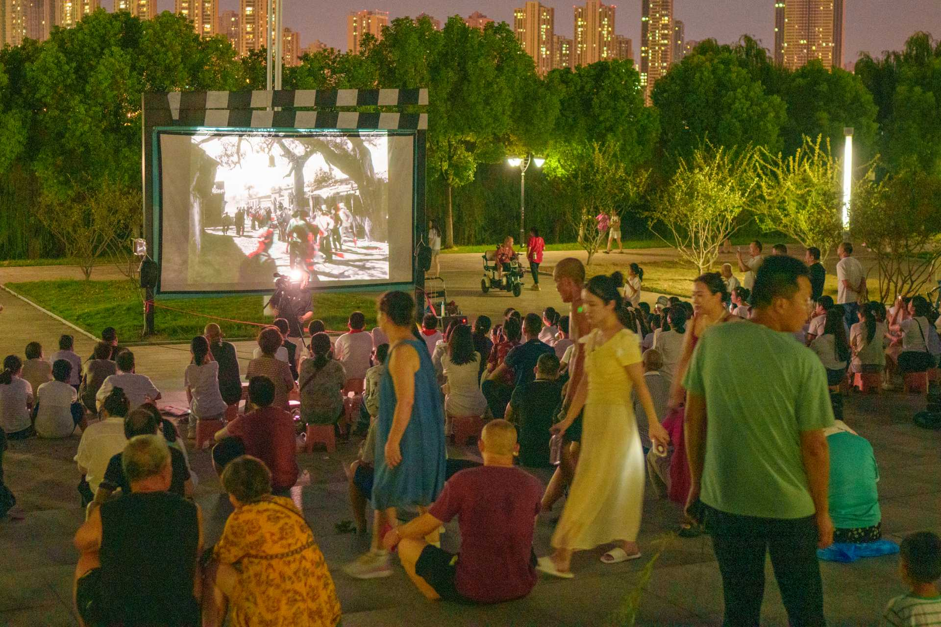 夜幕降临,抗战题材电影《地道战》准时放映,广大居民随着电影情节重温抗战记忆,共同感受历史的厚重与和平的珍贵。
