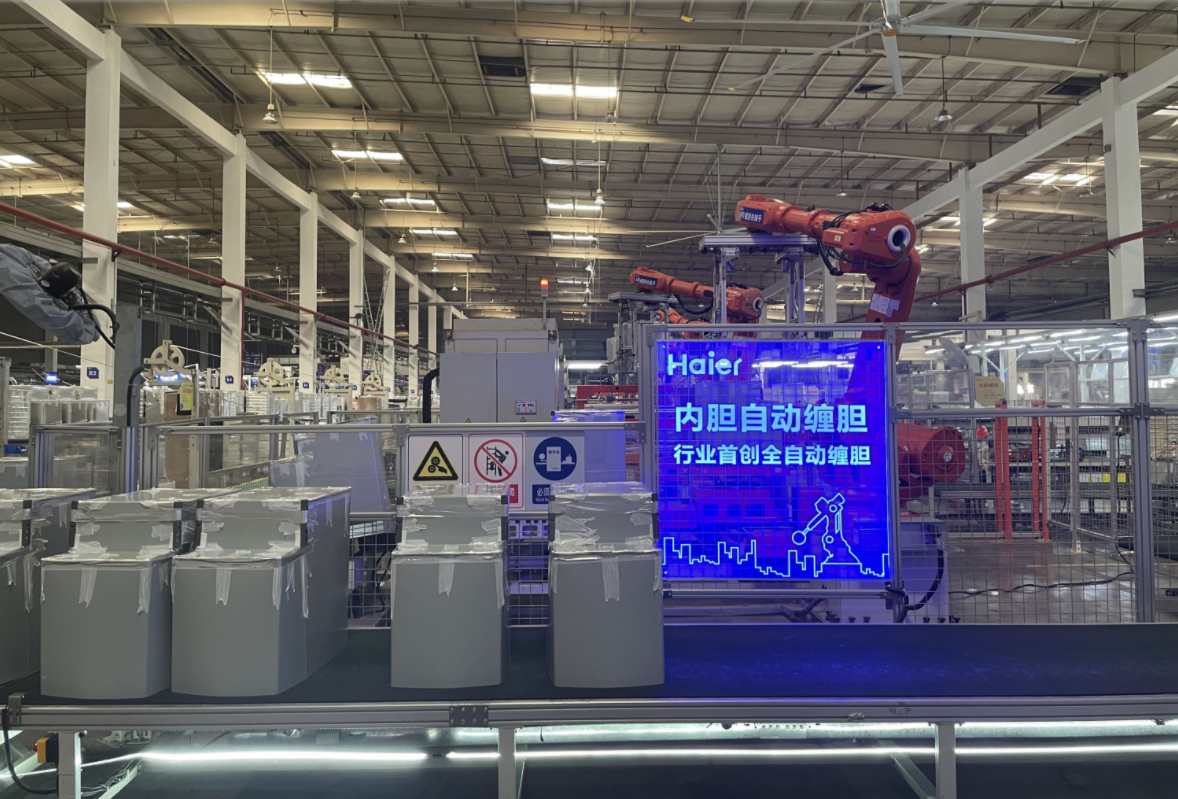 武汉海尔电冰柜生产车间,随处可见机械臂在高效运转。