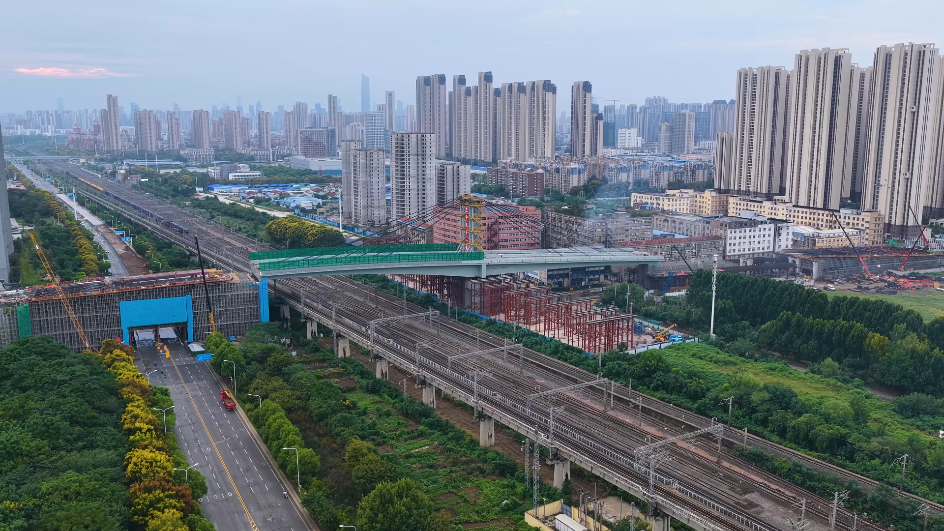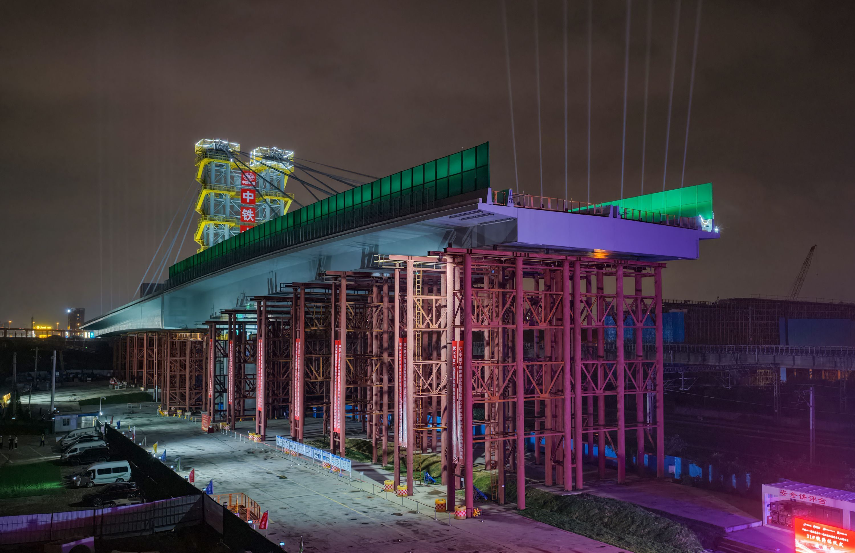 为什么要设计成如此大的纵坡?技术人员介绍,这主要是因为该桥上跨沪蓉、汉丹等8股运营铁路线,其中沪蓉上行线在此处为简支梁桥。转体桥设置较大纵坡,正是为了保障梁体和下方的铁路接触网有足够的安全高度。