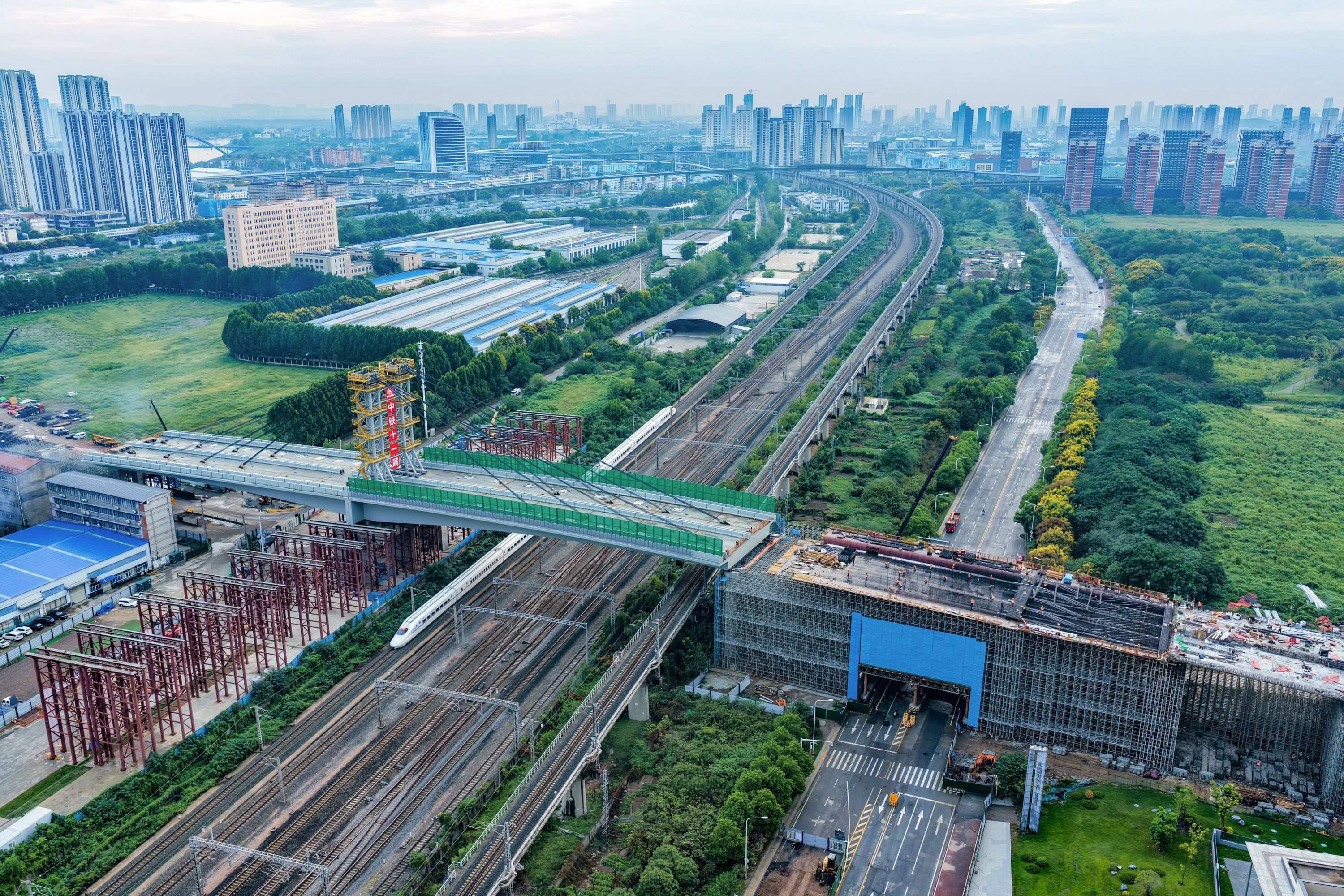 硚口区古田一路北段工程跨铁路转体现场。通讯员沈正华摄
