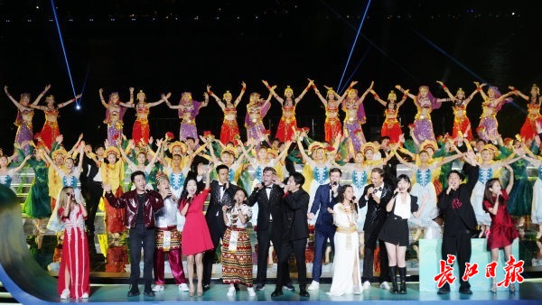 据介绍,开幕式围绕“人民母亲河”“生态长江”“文化长江”“开放长江”“长江新时代”五大主题。除舞台节目外,科技与艺术的结合也成为本次开幕式的一大亮点。4000架无人机与舞台演出、夜空烟花联动,展演“江豚逐浪”“花开中华”等震撼画面,夜空光影与舞台演出相互辉映,营造出“江天一色”的壮丽景观。