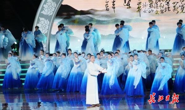 舞台前方一条蜿蜒的水带引江水入池,凤凰、黄鹤楼等荆楚元素主题花船缓缓游弋。开幕式总导演朱新农介绍,“舞台创意体现水天一色的概念。选取的是整个湖北段离长江最近的三阳广场,将自然景观和文化艺术表演完美融合。深度挖掘长江文明与荆楚文化的内涵,精选歌曲、舞蹈、器乐、戏歌等多元艺术形式演绎长江文化的千年风华。”