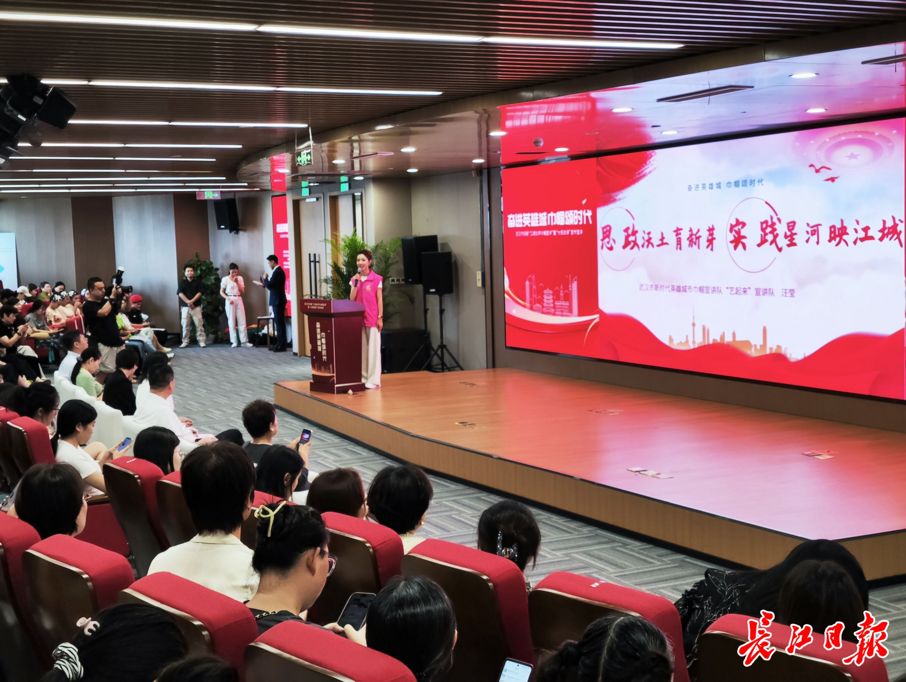 9月11日下午,“奋进英雄城 巾帼颂时代”——武汉市妇联“江城女声巾帼宣讲”暨“大思政课”宣传宣讲活动在中碳登大厦举行。汪莹站在台上,讲述她们如何用快板、三句半、音乐党课,把党的二十大和二十届三中全会精神,“唱”进老百姓的日常生活。