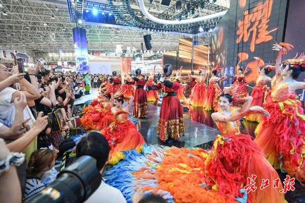 在湖北馆内,还可以看到湖北文旅的双轴景色。左侧“神武峡”国际生态文化旅游线路,浓缩鄂西武当仙境、神农秘境、三峡壮阔、恩施奇观,集世界级自然文化遗产于一线,在现场观众能看到国家级非遗武当武术的表演。表演者一招一式刚劲有力、行云流水,游客们看得目不转睛,不时发出阵阵掌声。“以前只在电视上看过武当武术,这次在现场近距离观看,太精彩了,感受到了中华武术的博大精深。”一位游客兴奋地说。