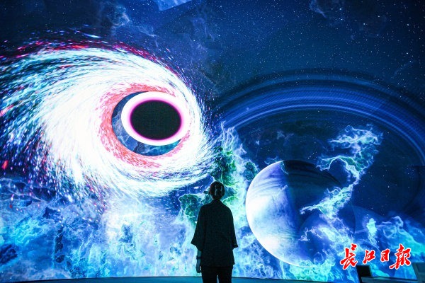观众在体验直径达14米的8K超高清LED球幕。