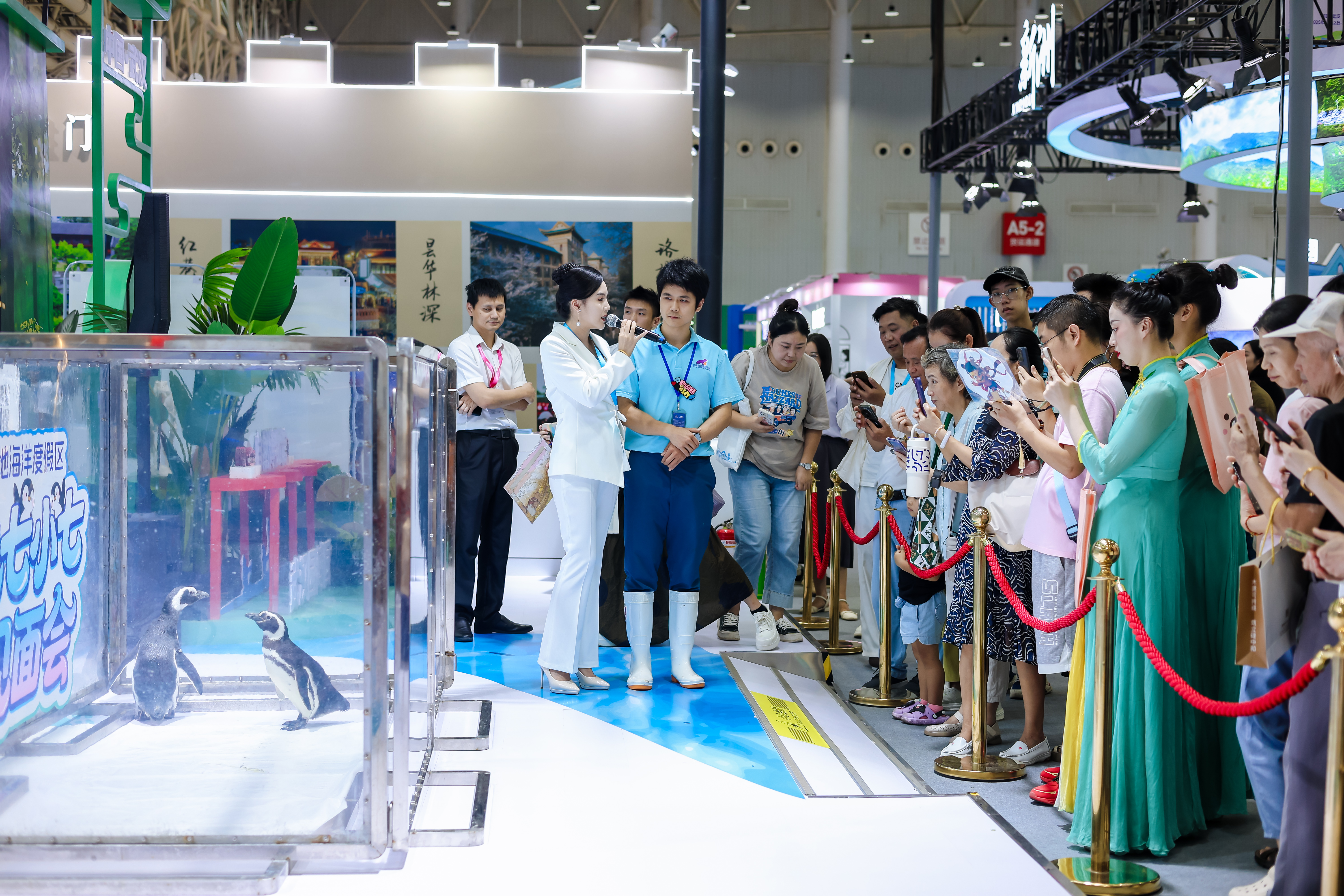 一边是麦氏环企鹅优雅亮相,一边是独弦琴与箫声婉转合奏……9月12日,2025中国文化旅游产业博览会东西湖展区人潮涌动,观鱼、听曲、品茶,精彩不断,令人流连忘返。