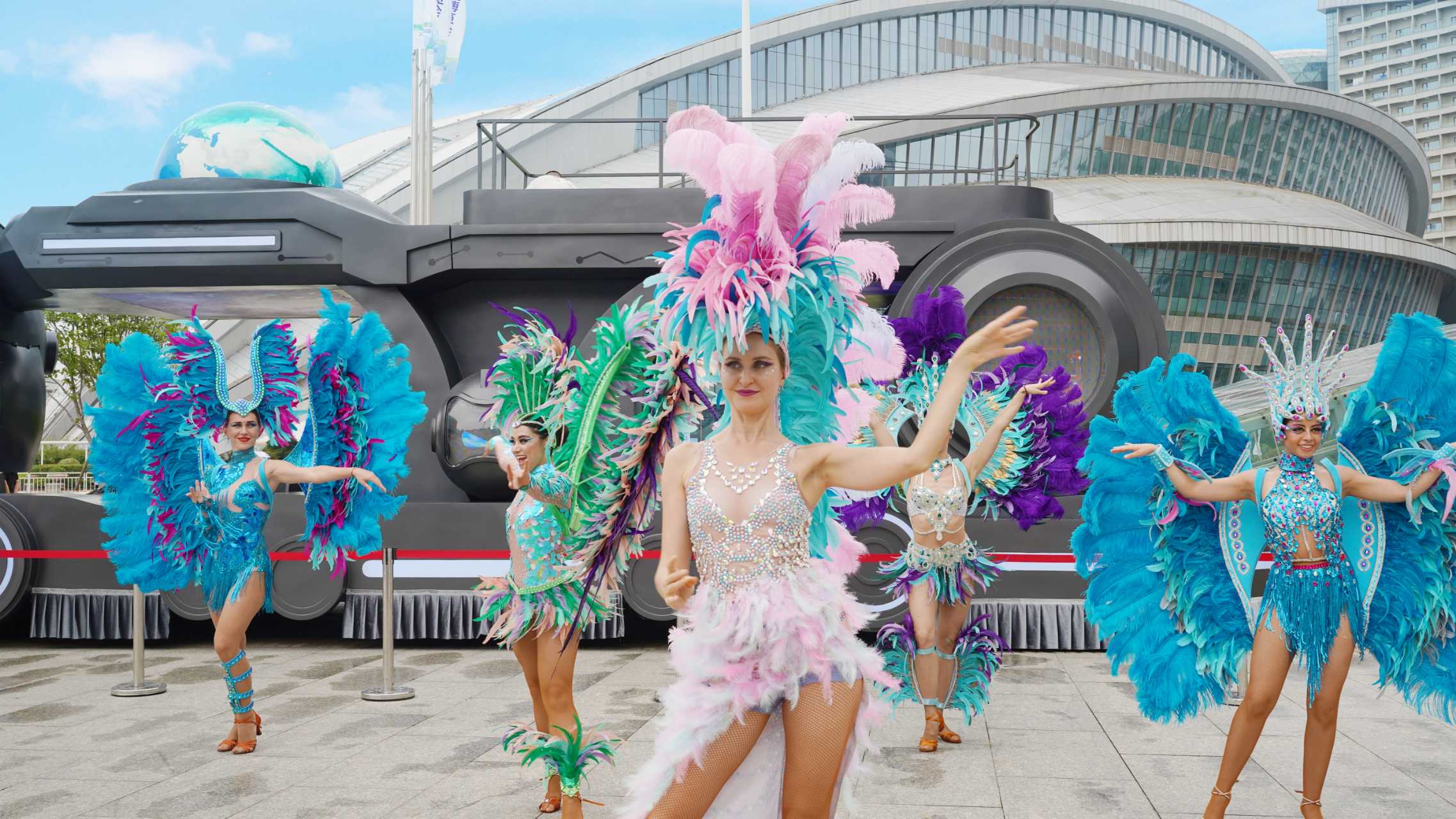 除了企鹅巡游,展区的生态鱼缸也吸引众多目光,色彩斑斓的小型热带鱼悠然游弋,生动展现海洋生物多样性。极地大马戏花车巡游将气氛推向高潮,演员们身着特色服饰,与观众热情互动,重现度假区内的欢乐场景。