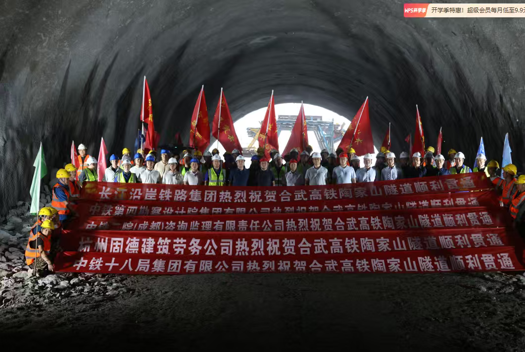 长江日报大武汉客户端9月13日讯(记者汪文汉 通讯员姚威)9月12日,由中铁十八局承建的合武高铁陶家山隧道提前贯通,成为合武高铁湖北段首座贯通的隧道,项目建设取得重大进展。