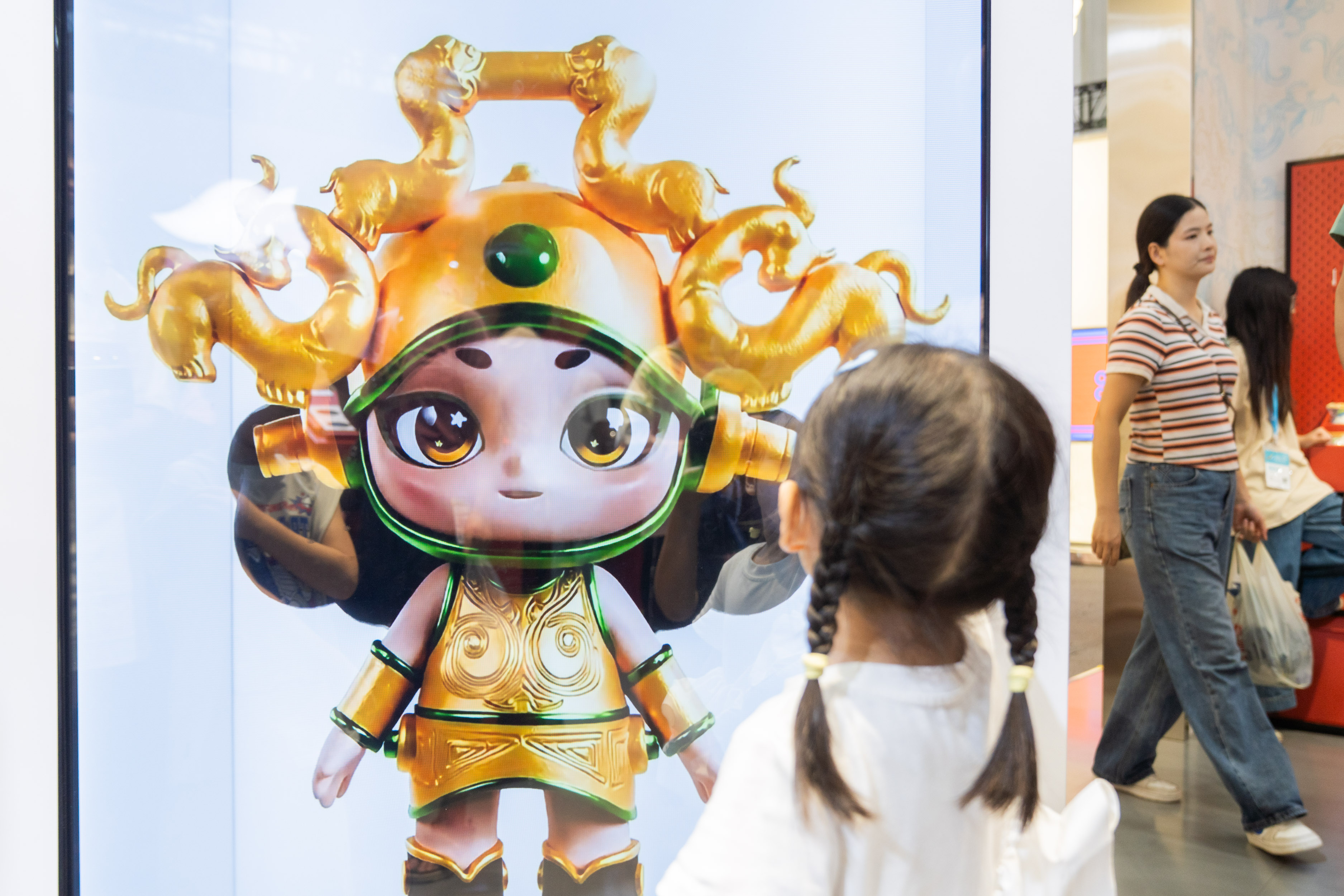 在湖北省博物馆展位,大屏幕上的数字人剑灵引人注目。这是为庆祝越王勾践剑出土60周年,湖北省博物馆打造的全国首款全息可互动数字文创产品。剑灵以“越王勾践剑”为原型,创新塑造出的数字人形象。通过其灵动演绎,带领观众了解越王勾践的历史故事与勾践剑的文化精髓。让沉睡的文物在科技中苏醒,真正“活”起来、“动”起来、“玩”起来,开启一场穿越千年的文化对话。
