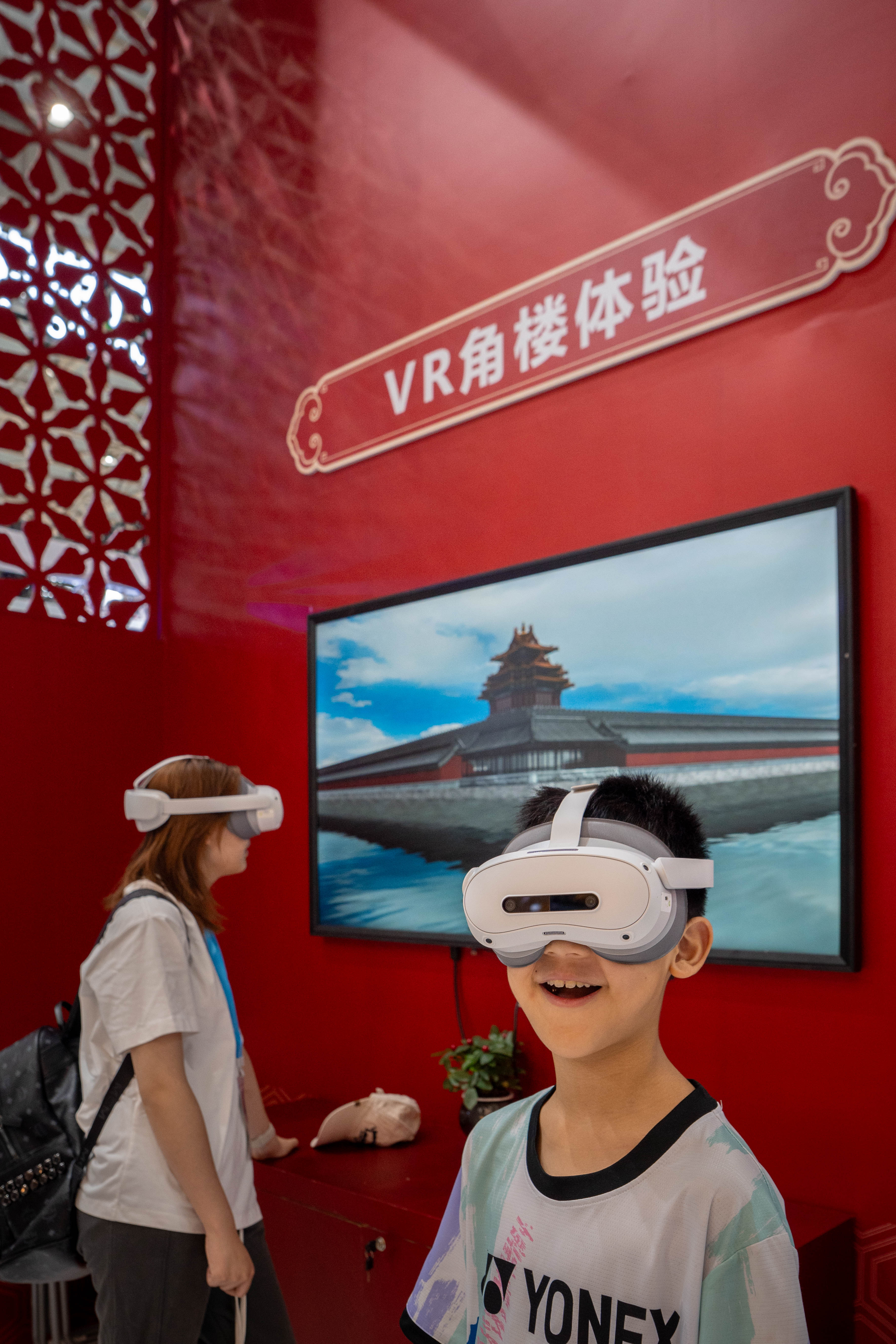故宫博物院展位的VR角楼体验设备。朱楷 摄