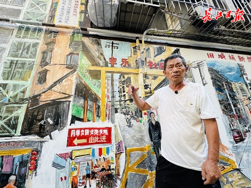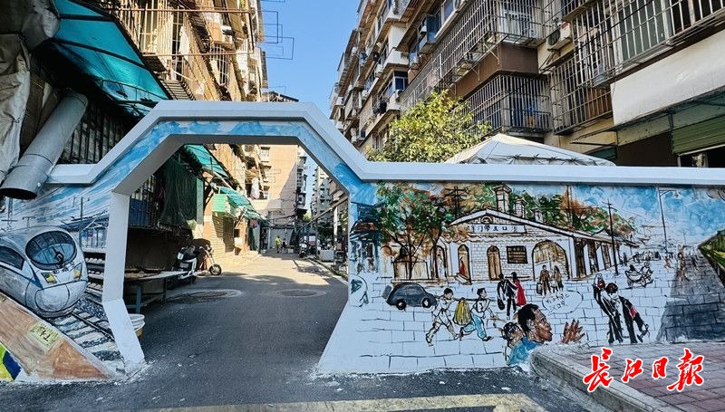 16日下午,长江日报记者来到荣华街道幸乐社区,只见幸乐村10号的外墙上绘制了一幅反映居民生活的巨幅画卷,名为《旧城焕新颜》。