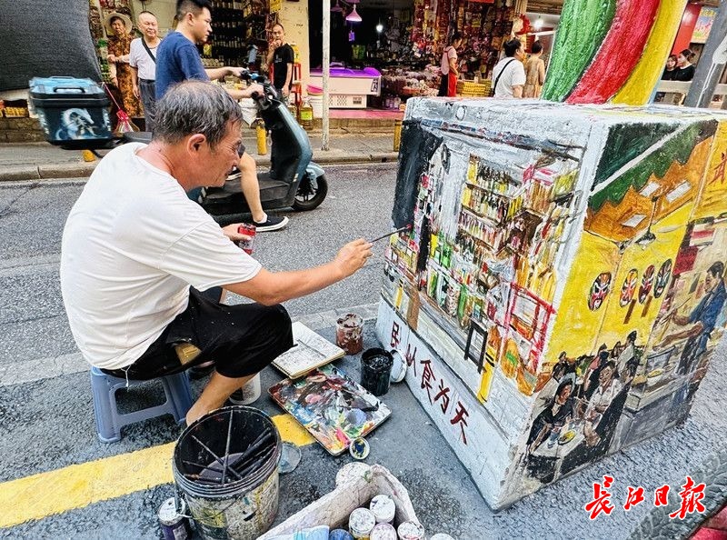谈起创作过程,易小阳连呼“过瘾”,“我一路走街串巷,蹲点小吃店门口仔细观察。排长队的、吃得香的,那种生活气息特别打动我。我就把这些鲜活的场景一一画上墙,让美好的瞬间永远留下来”。