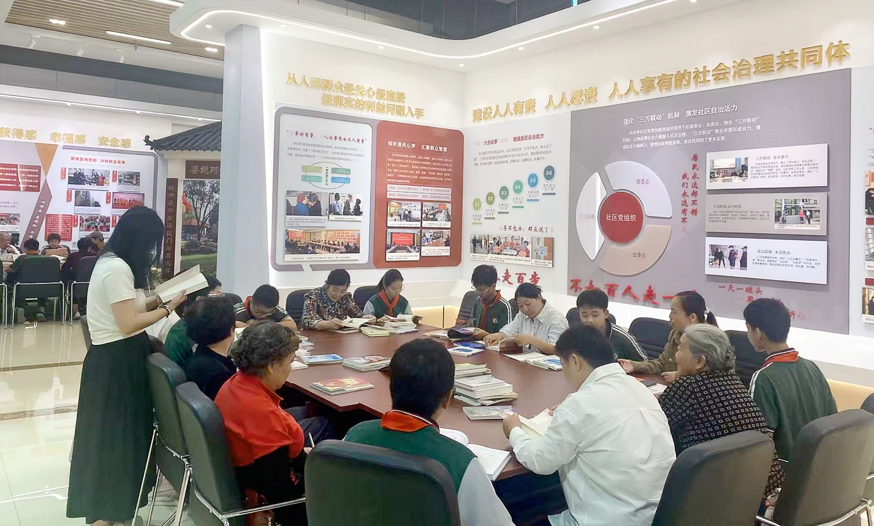 本次参与共建的百步亭社区屡获“全国先进基层党组织”“全国文明社区”等多个国家级荣誉称号,社区文化氛围浓厚。走进百步亭社区党群服务中心,浓郁的阅读氛围扑面而来,随处可见沉浸于书籍的社区居民。二楼的社区图书馆,一排排书架整齐排列,来自汉铁初中的同学们正围坐其间静享书香,这里早已成为邻里间共享的精神家园。