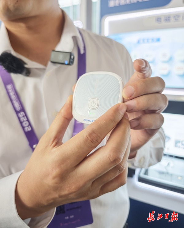 “这是针对目前针孔摄像头‘猖獗’现象,实验室推出的自主研发设计的AI防偷拍检测仪,能找到非法安装在酒店、出租屋里的隐蔽摄像头。”在电磁空间安全科创联合实验室的展台前,实验室宣教办公室主任肖潇手持鸡蛋大小的检测仪向长江日报记者介绍。