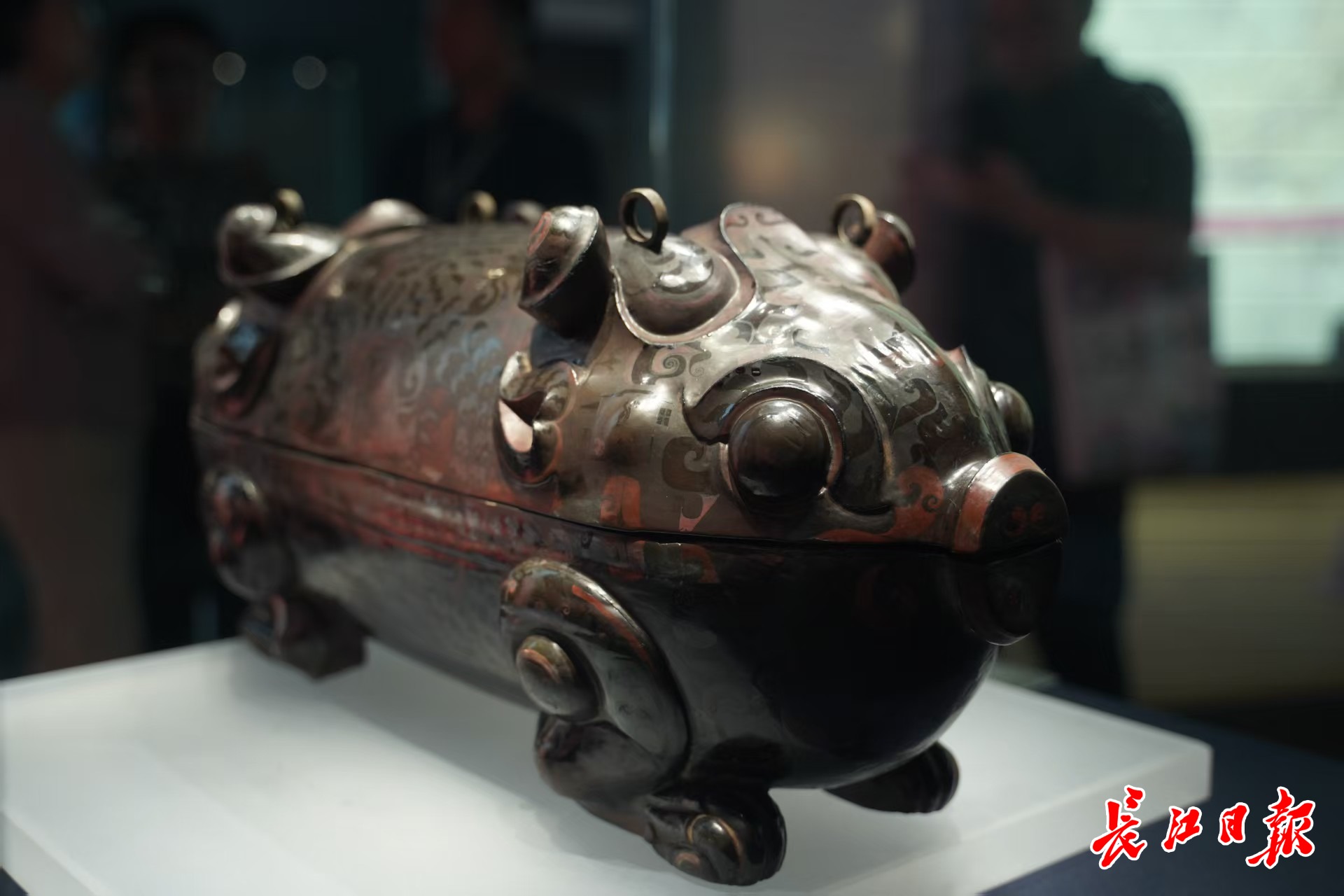 战国猪形酒具盒,荆州博物馆藏。 记者樊友寒 摄