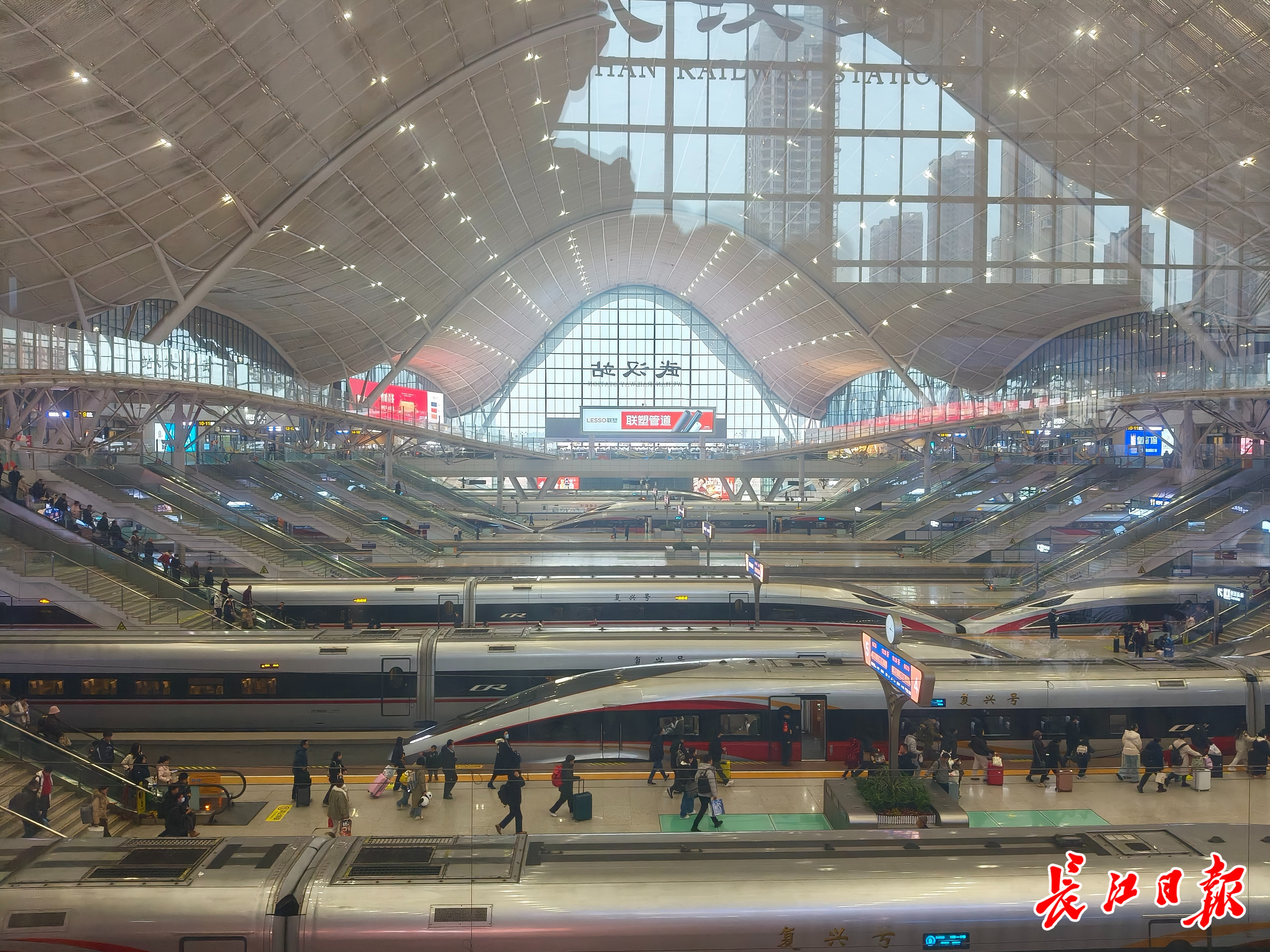 武汉站作为武广高铁始发站,每天车次十分密集。记者刘海锋 摄