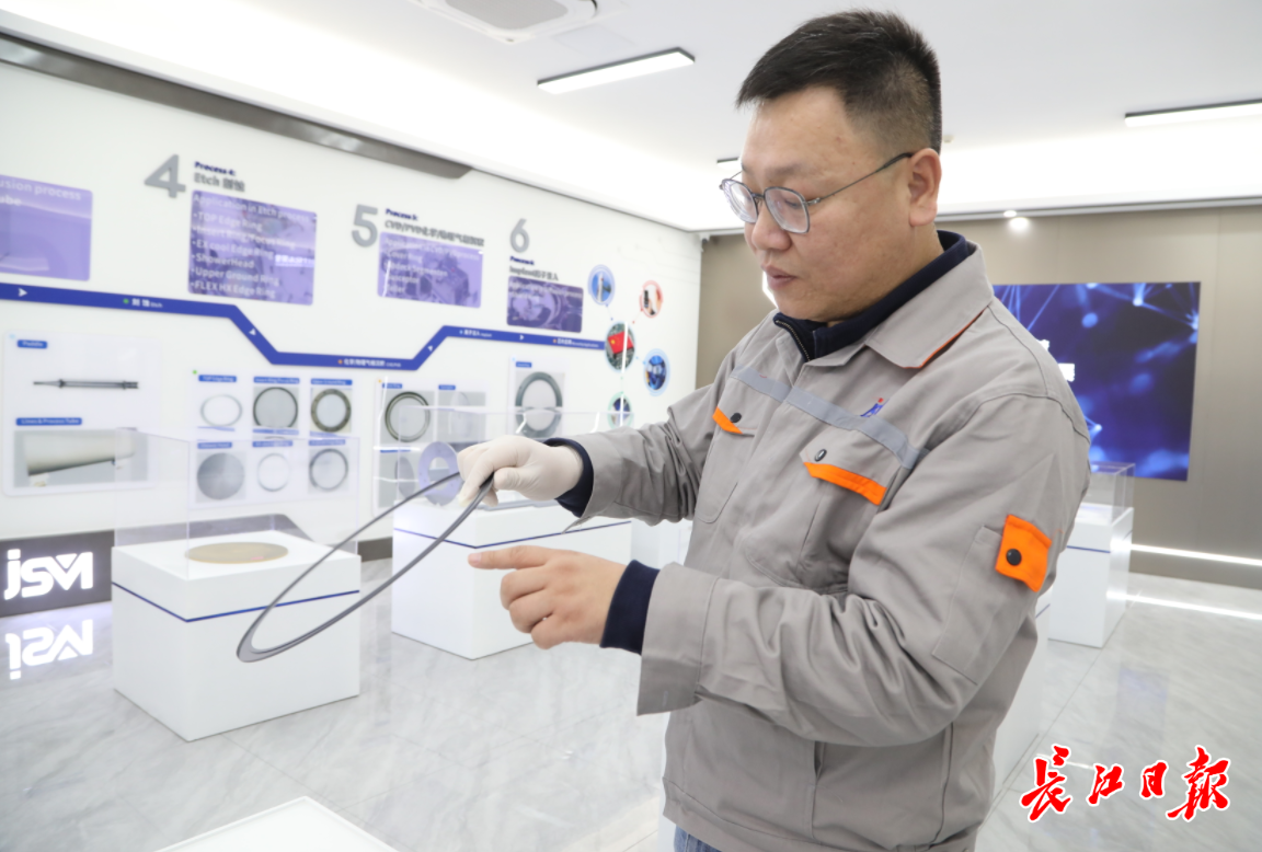 吉盛微(武汉)新材料科技有限公司总经理刘宁宁介绍其拳头产品——边缘环。 记者王双双 摄