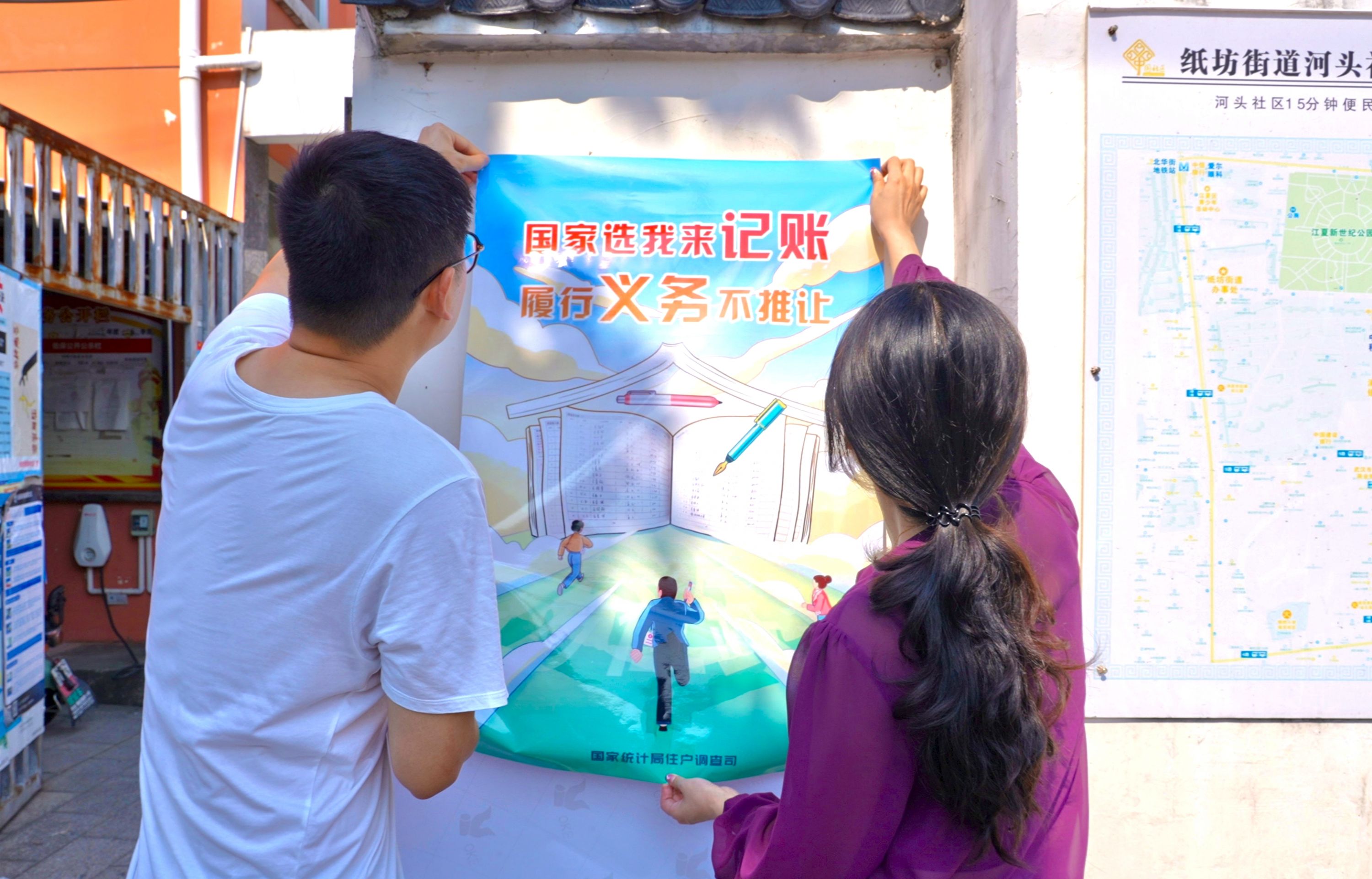 调查员在社区张贴周期内样本轮换宣传海报。通讯员孙诚供图
