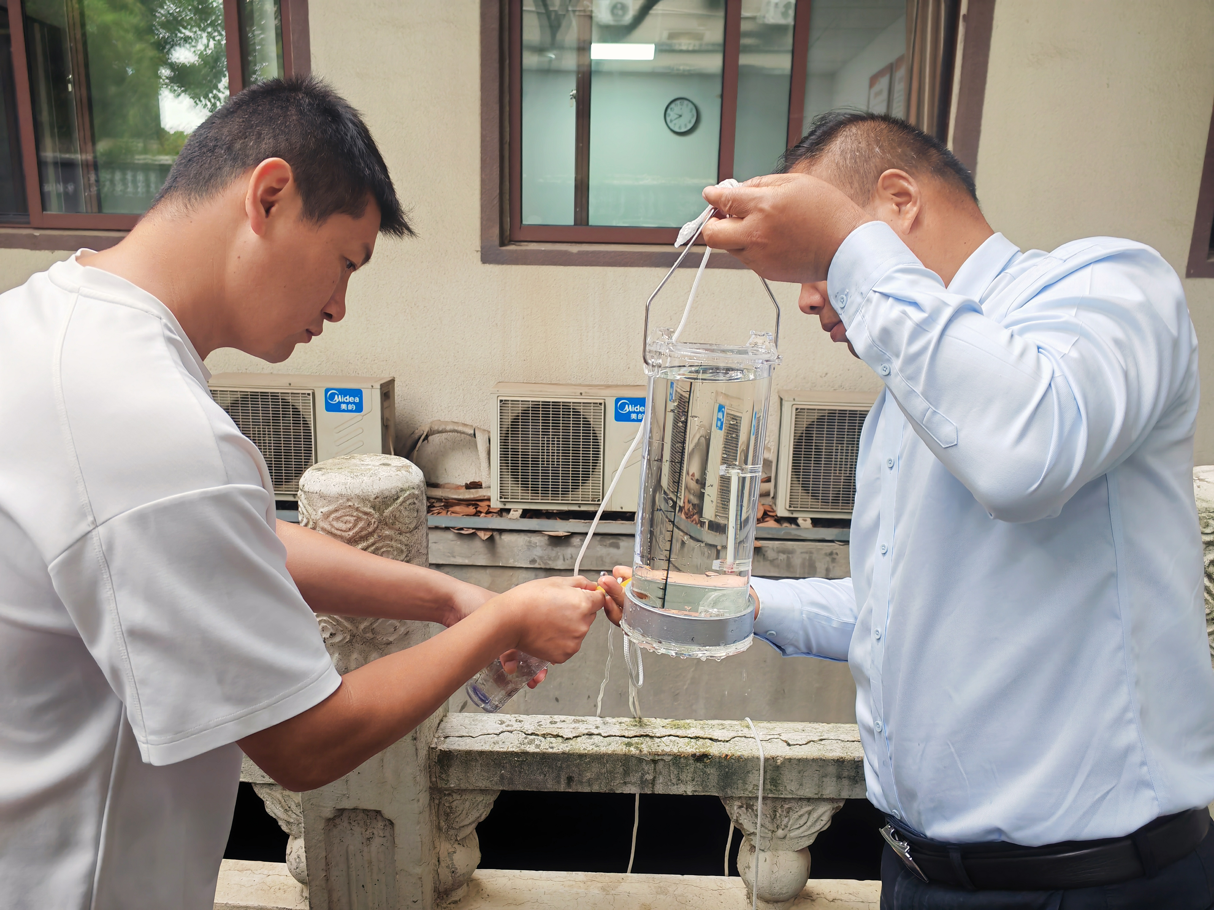 研究人员正在提取桃花水母样本。通讯员陈昱 供图