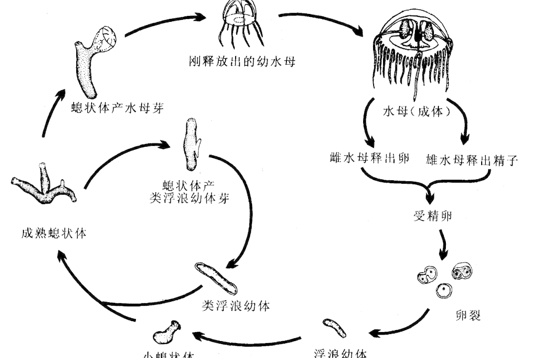 当外界环境改善时,这些休眠体重新发育为螅状体;一旦条件更加有利,螅状体就开始无性繁殖,直接从身体上“长出”芽体,然后“分身”脱落,成为肉眼可见的水母体。水母体的生命较短,一般在2—50天。在温度、水质等适宜环境下,水母体的雌、雄个体开始有性生殖,产生受精卵、发育成浮游幼虫,继续水螅型的生态过程。
