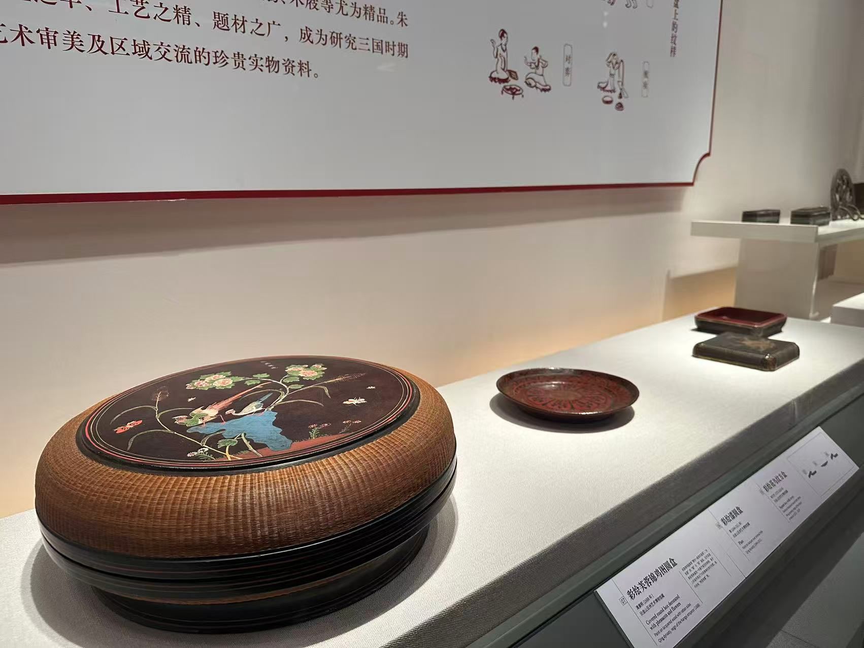此外,湖南博物院、荆州博物馆、马鞍山市三国朱然家族墓地博物馆、扬州博物馆等机构也将带来三国彩绘贵族生活图漆盘、战国彩绘浮雕鸳鸯漆盖豆等代表性器物。湖北美术馆则提供当代漆画作品,展现大漆艺术在今天的创新活力。