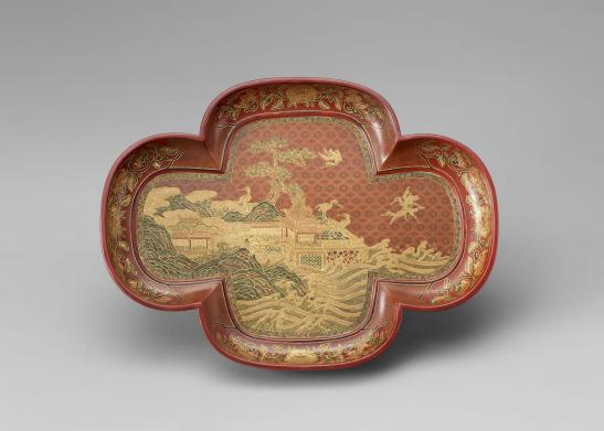 清 乾隆款朱漆戗金填彩海棠仙盘 旧金山亚洲艺术博物馆藏
