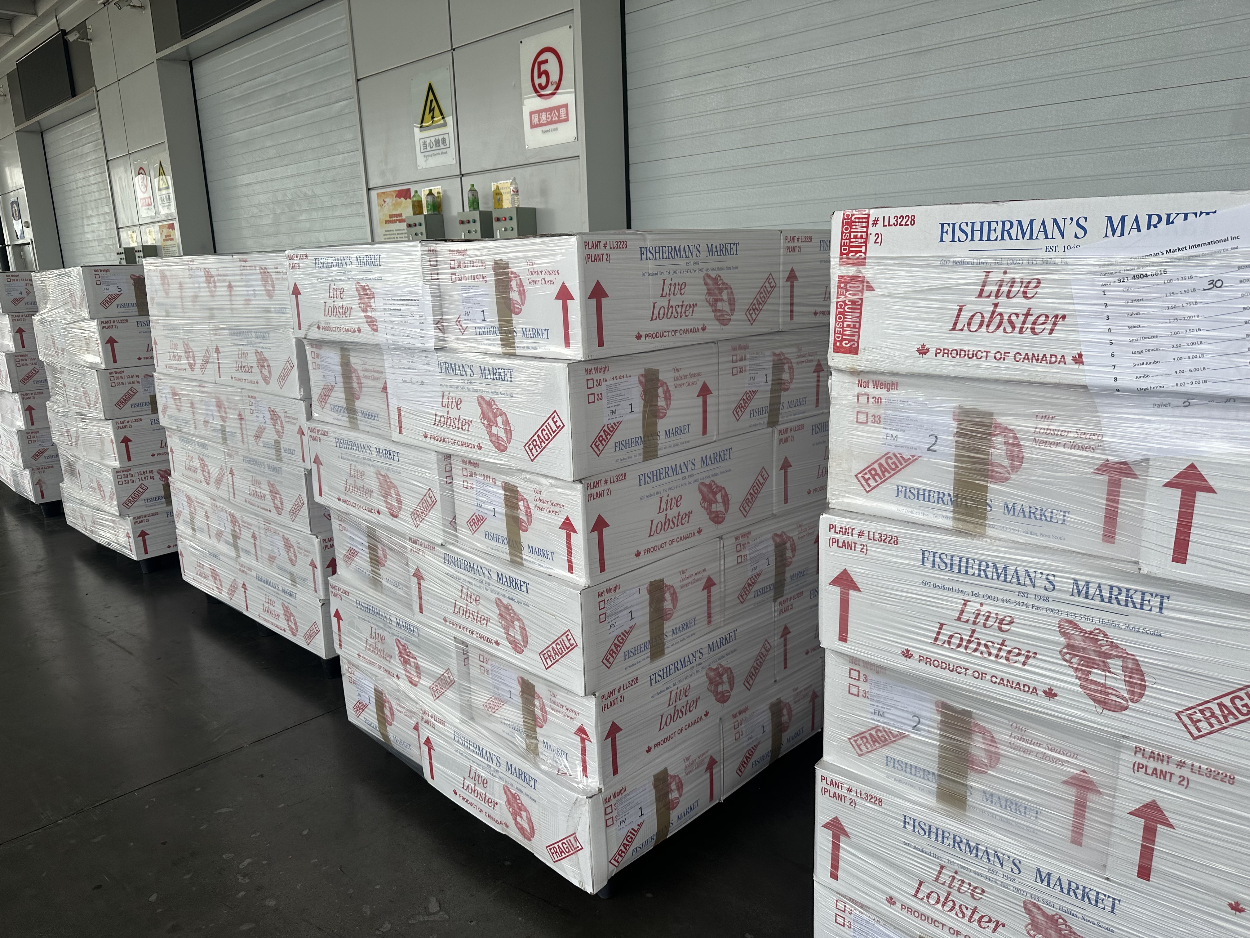 航班落地后,保障团队早已提前抵达现场待命,一场与时间赛跑的“鲜货保卫战”即刻打响。从飞机腹舱卸载龙虾货物,到快速转运至指定温控仓储区域,再到协助办理通关手续,每一个步骤都衔接紧密、高效有序。得益于前期的周密部署和现场人员的专业操作,整个流程无缝衔接,最大程度减少了货物在中转环节的停留时间,第一时间送到冷库和商超、大型酒店,切实保障了波士顿龙虾的新鲜度,尤其让湖北人在国庆节和中秋节第一时间品尝到新鲜的波士顿龙虾。