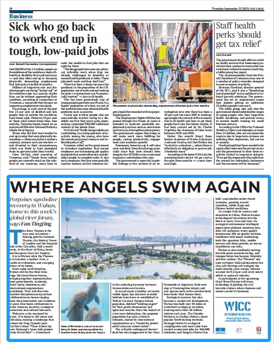 长江日报大武汉客户端9月27日讯(记者范婷婷)当地时间9月25日,英国媒体《泰晤士报》刊登文章《天使游回》,聚焦武汉在长江生态保护方面的最新成果,重点关注长江江豚种群的恢复和武汉的绿色转型。这是继9月16日法国《费加罗报》、9月17日美国《华尔街日报》之后,又一家国际主流媒体将目光投向武汉的生态环境治理。