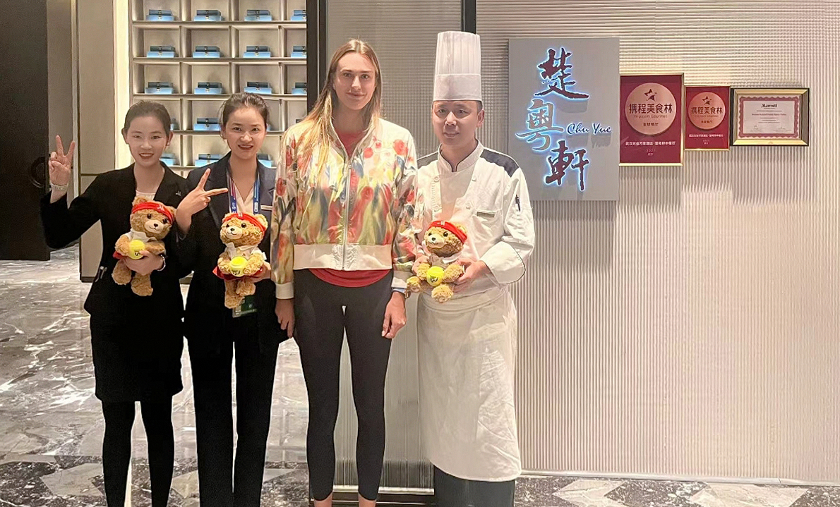 武网开赛在即,九派新闻记者探访了连续两年作为赛事官方指定酒店的武汉光谷万豪酒店。酒店工作人员透露,去年入住于此的著名球星萨巴伦卡对一道名为“甘蓝烧汁小牛肉”的菜品青睐有加,曾多次在餐厅点餐。
