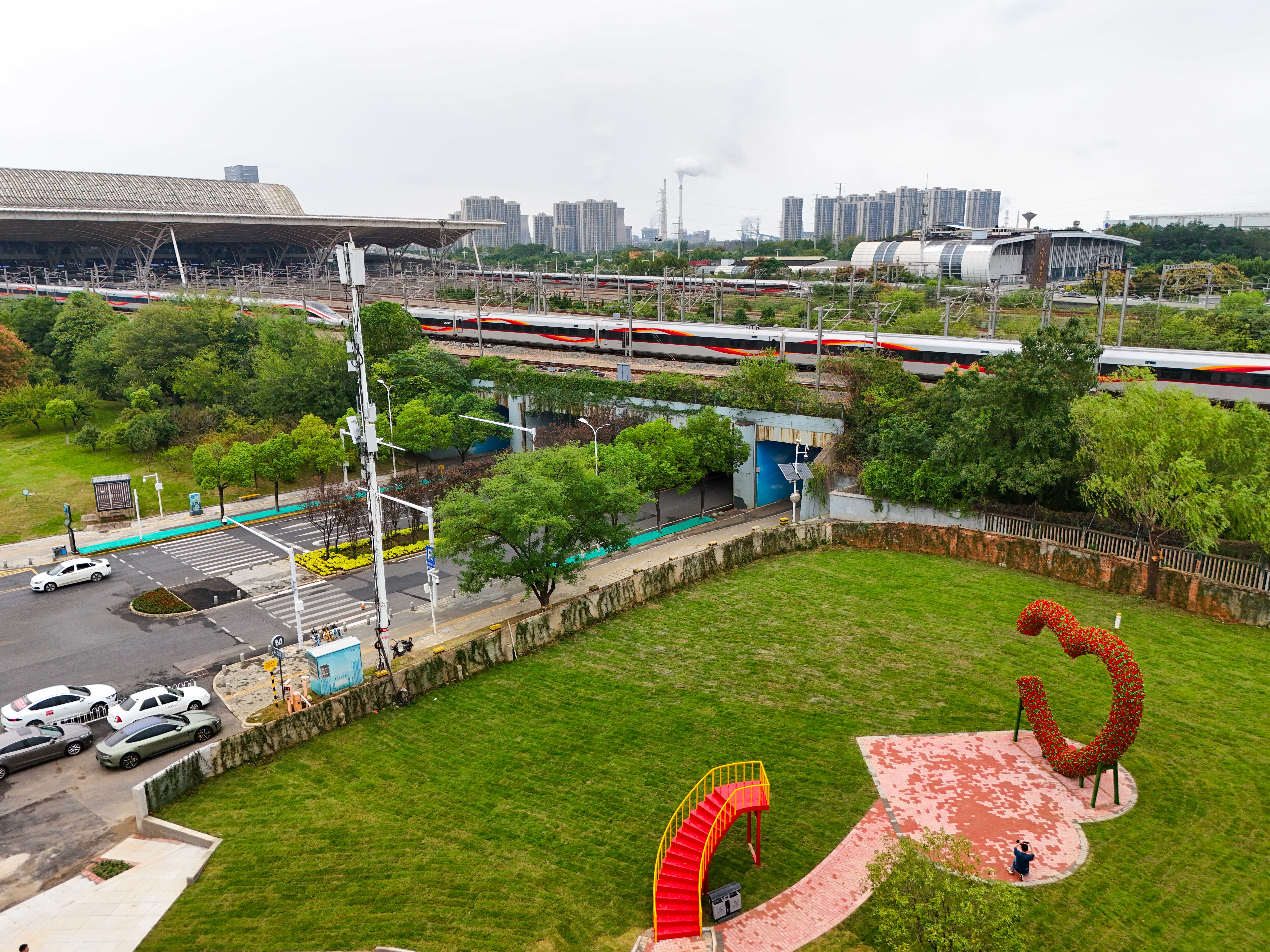 武汉火车站西广场站旁边新建的游园。通讯员供图