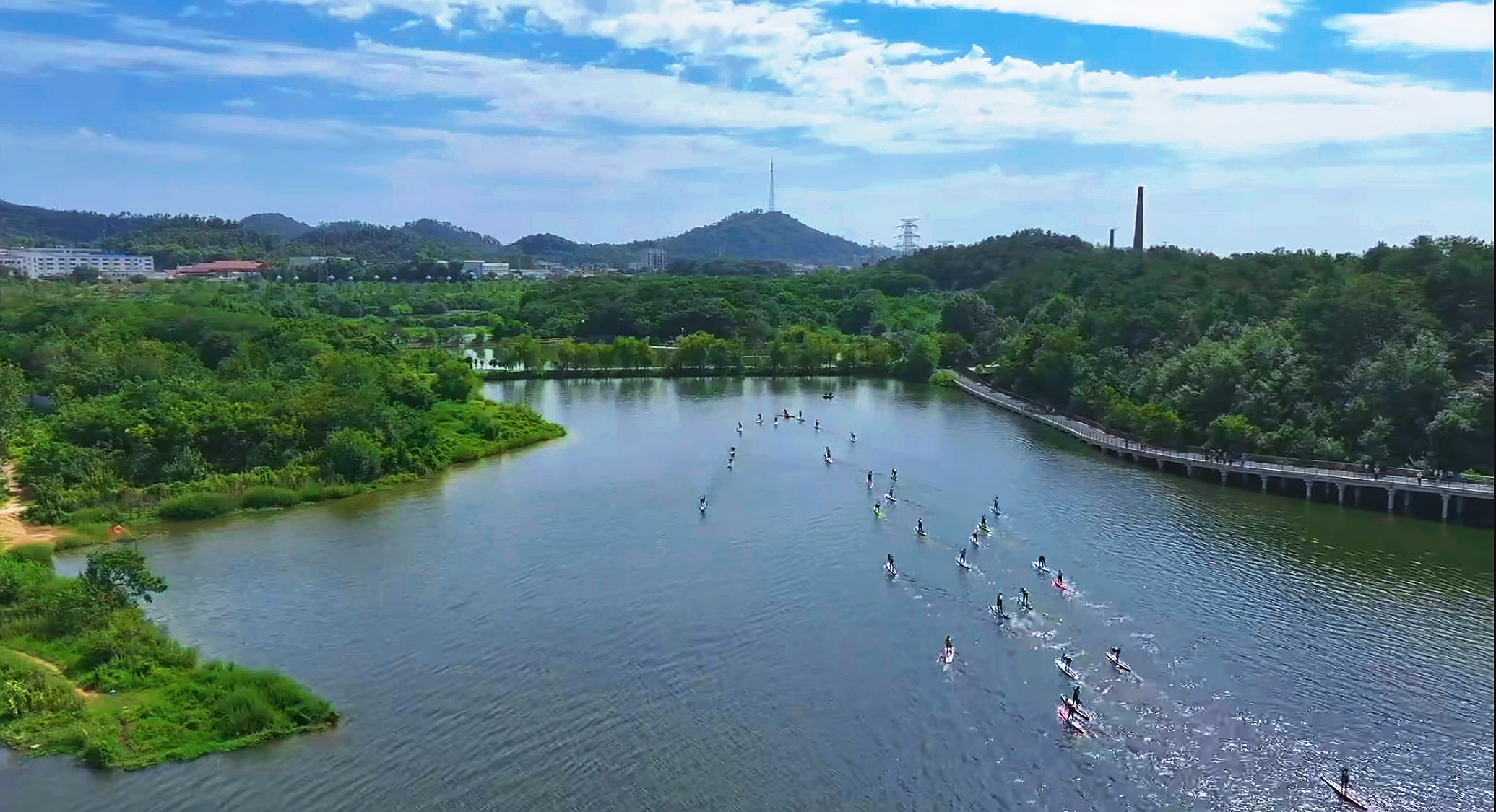 今年8月23日,湖北省桨板公开赛(江夏站)在凤栖湖公园举行,吸引近40支队伍共400名运动员参加,规模空前,场面热烈。